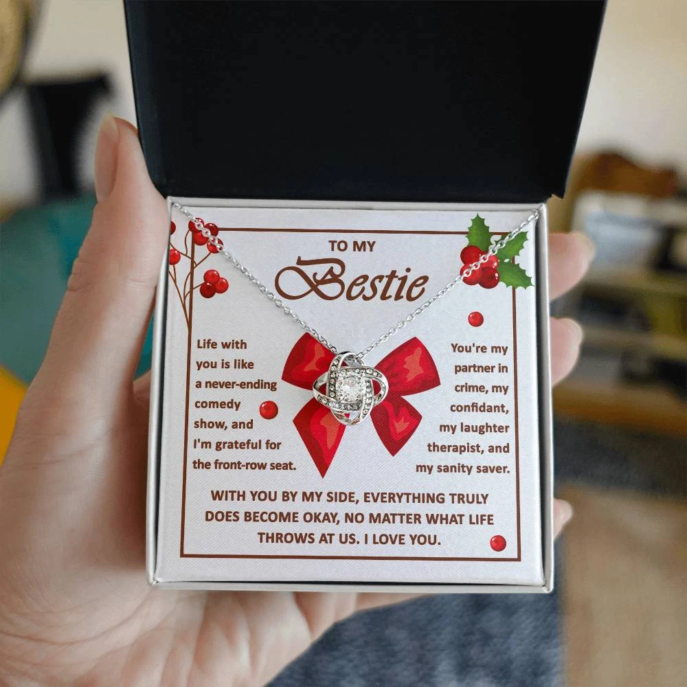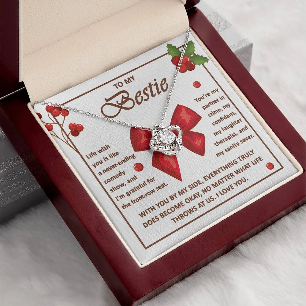 Imagine her reaction receiving this beautiful Love Knot Necklace. Representing an unbreakable bond between two souls, this piece features a beautiful pendant embellished with premium cubic zirconia crystals. Surprise your loved one with this gorgeous gift today!