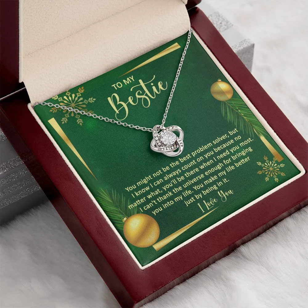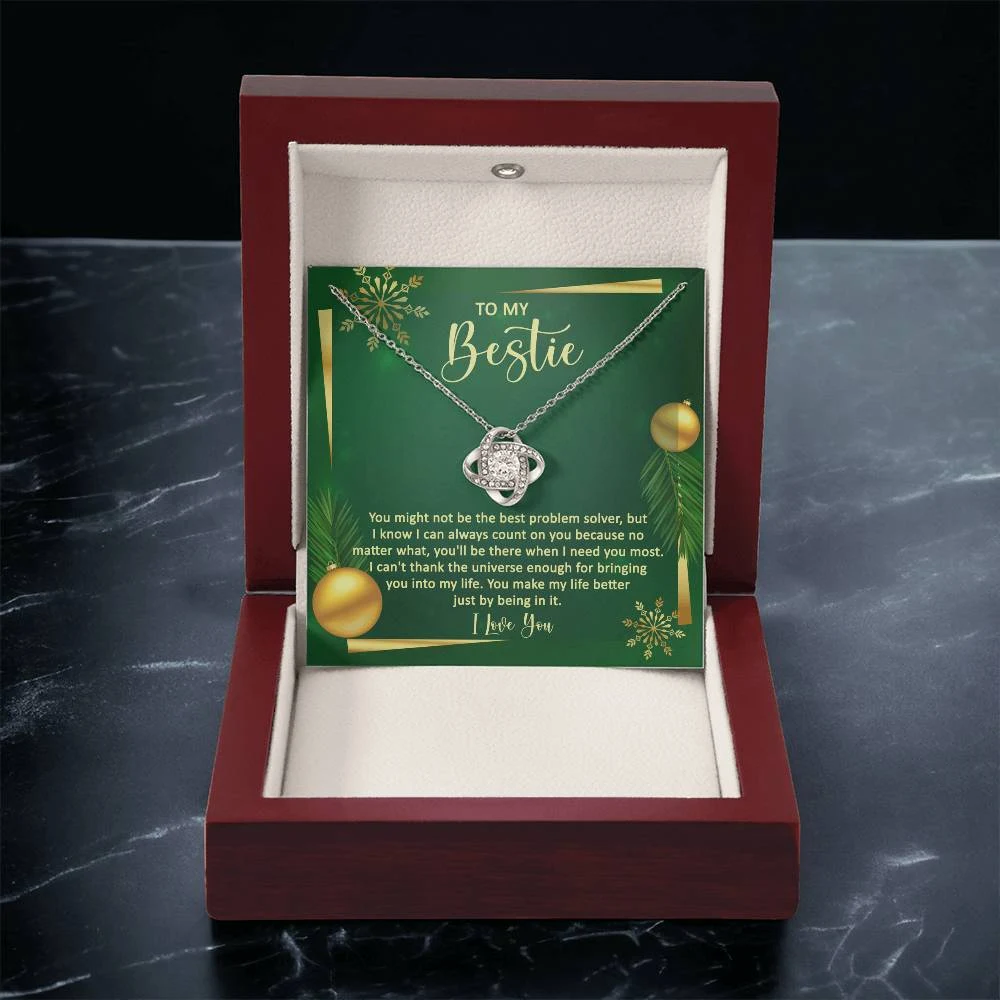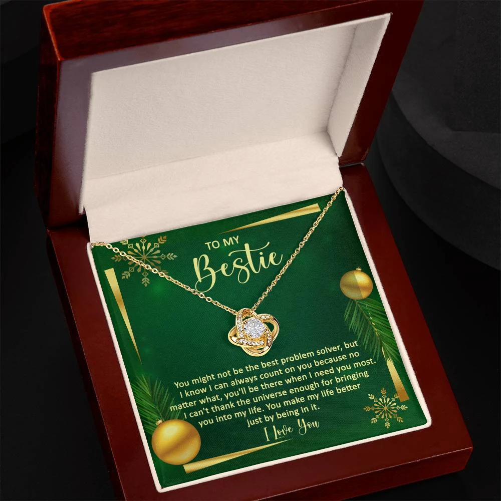 Imagine her reaction receiving this beautiful Love Knot Necklace. Representing an unbreakable bond between two souls, this piece features a beautiful pendant embellished with premium cubic zirconia crystals. Surprise your loved one with this gorgeous gift today!