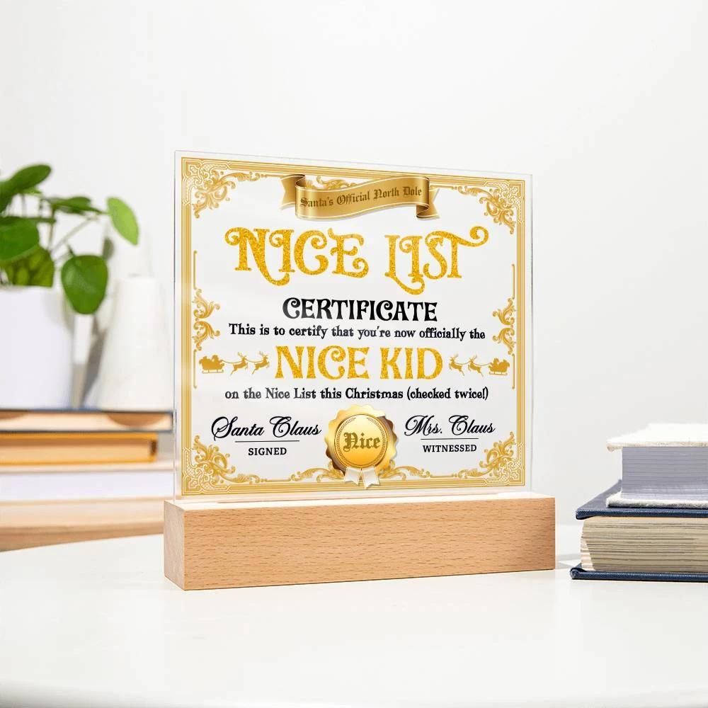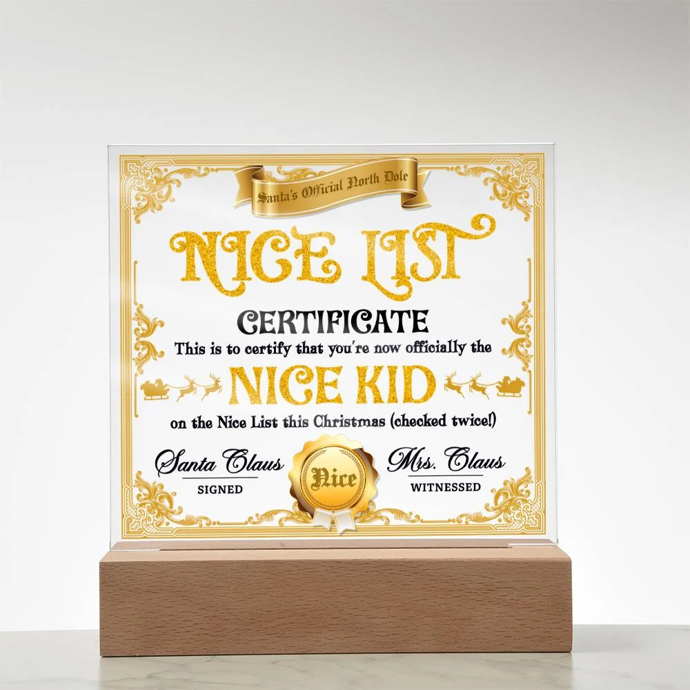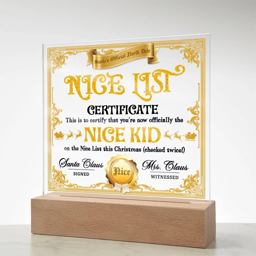 Christmas-Nice List Certificate-Acrylic