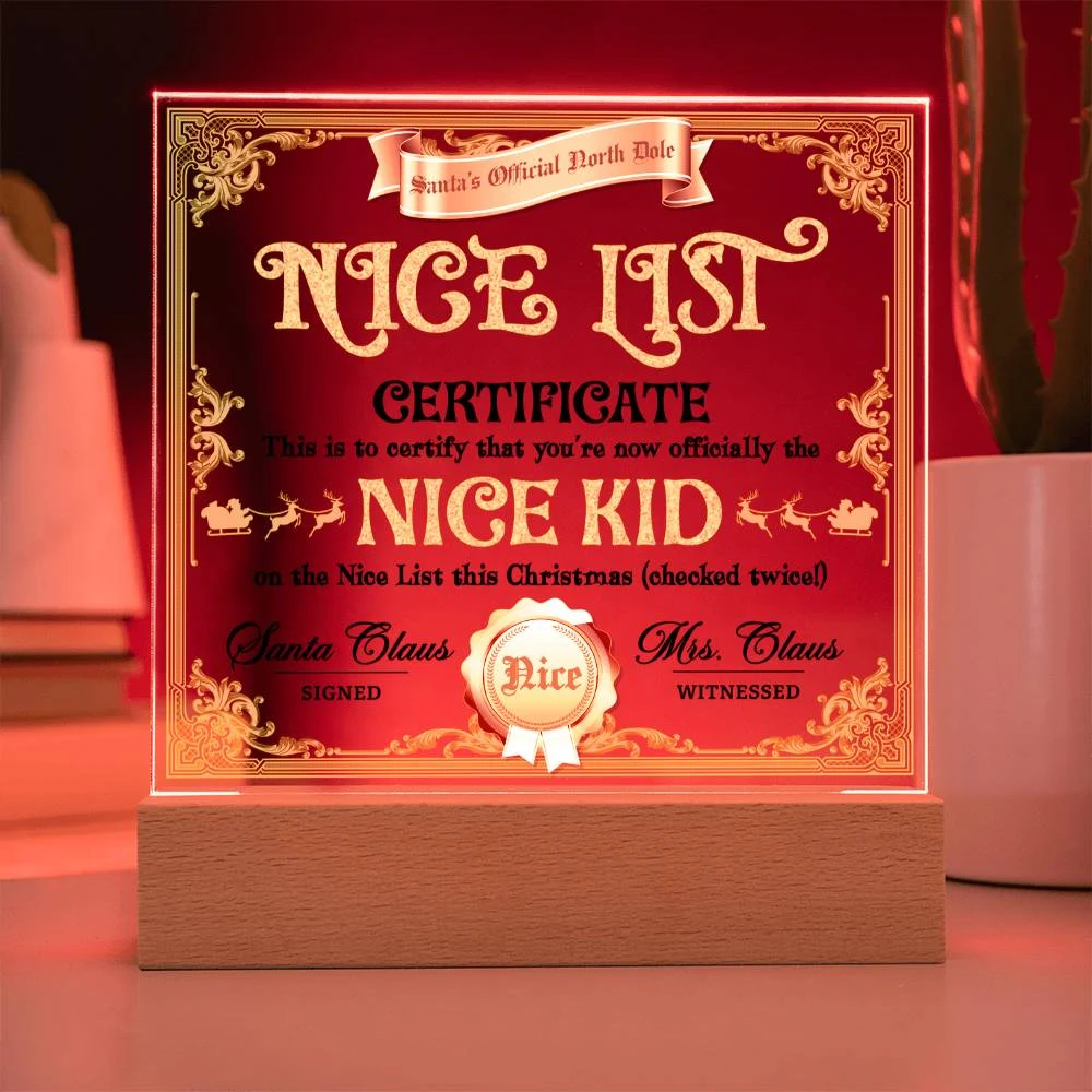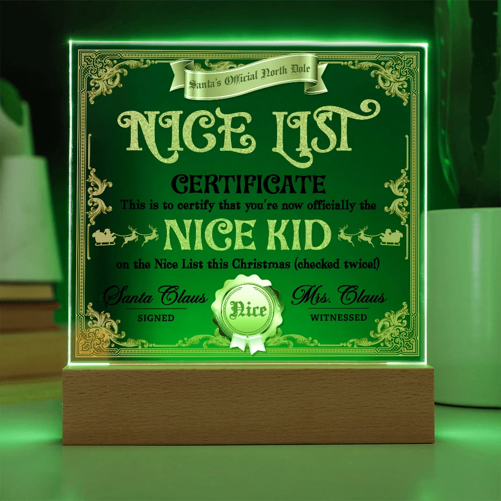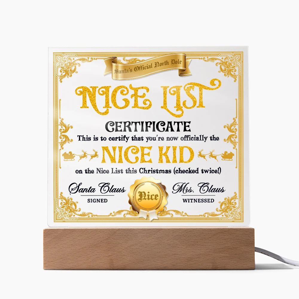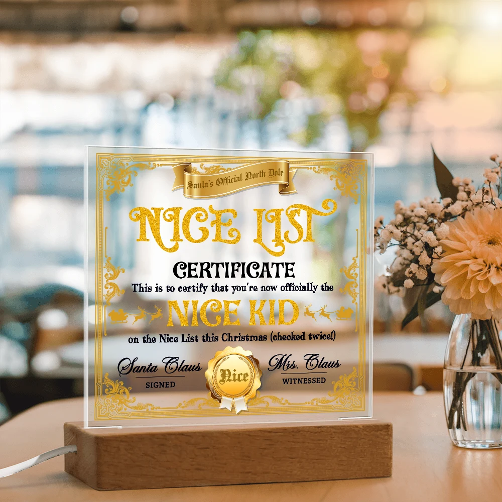 Christmas-Nice List Certificate-Acrylic