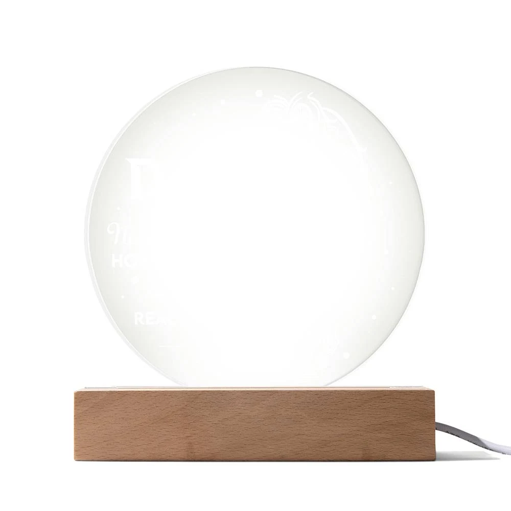 Your plaque will be crafted from premium acrylic with a professionally printed design for a polished look. It comes with a stylish wooden LED base, and you can choose between a USB plug-in option OR a cordless battery-operated option (requires 2 AAA batteries, not included). Both LED bases feature 7 vibrant colors, allowing the user to customize the lighting with various color changes and dynamic cycles.