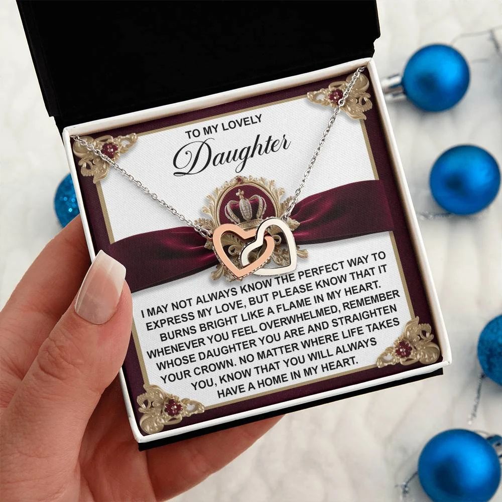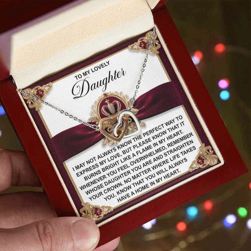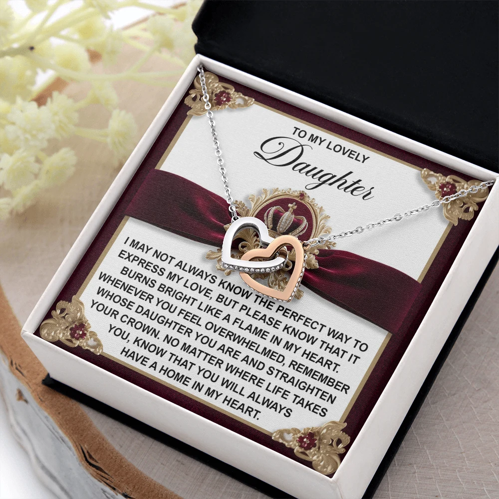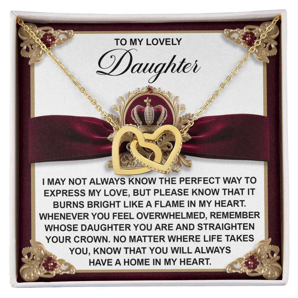 Interlocking Hearts – A Symbol of a Parent’s Endless Love ❤️ Two hearts, forever linked — just like the unbreakable bond between parent and child.. Featuring two lovely hearts embellished with cubic zirconia crystals, this Interlocking Hearts necklace is the perfect accessory for everyday wear. This elegant necklace is more than a gift — it’s a daily reminder that no matter where life leads, your heart is always with them.