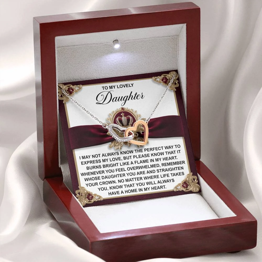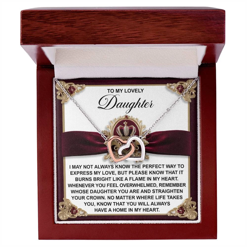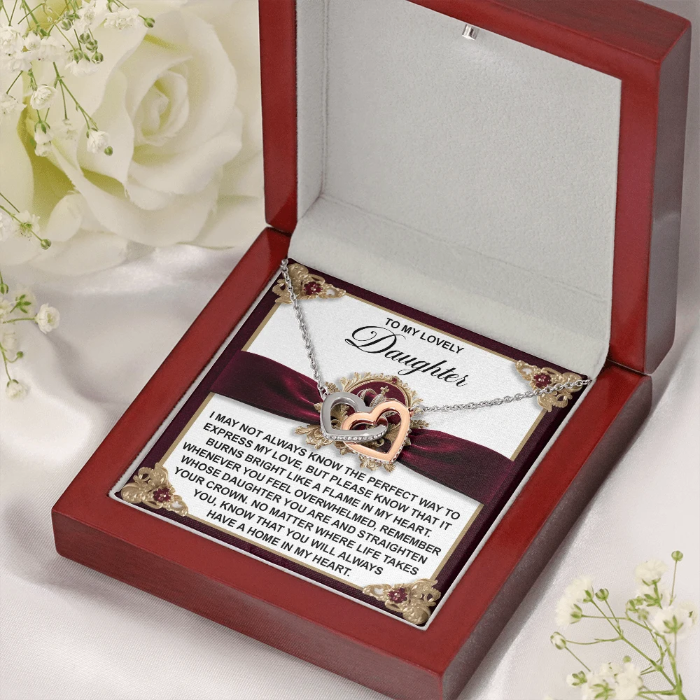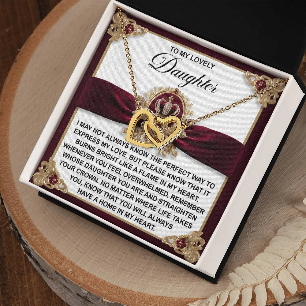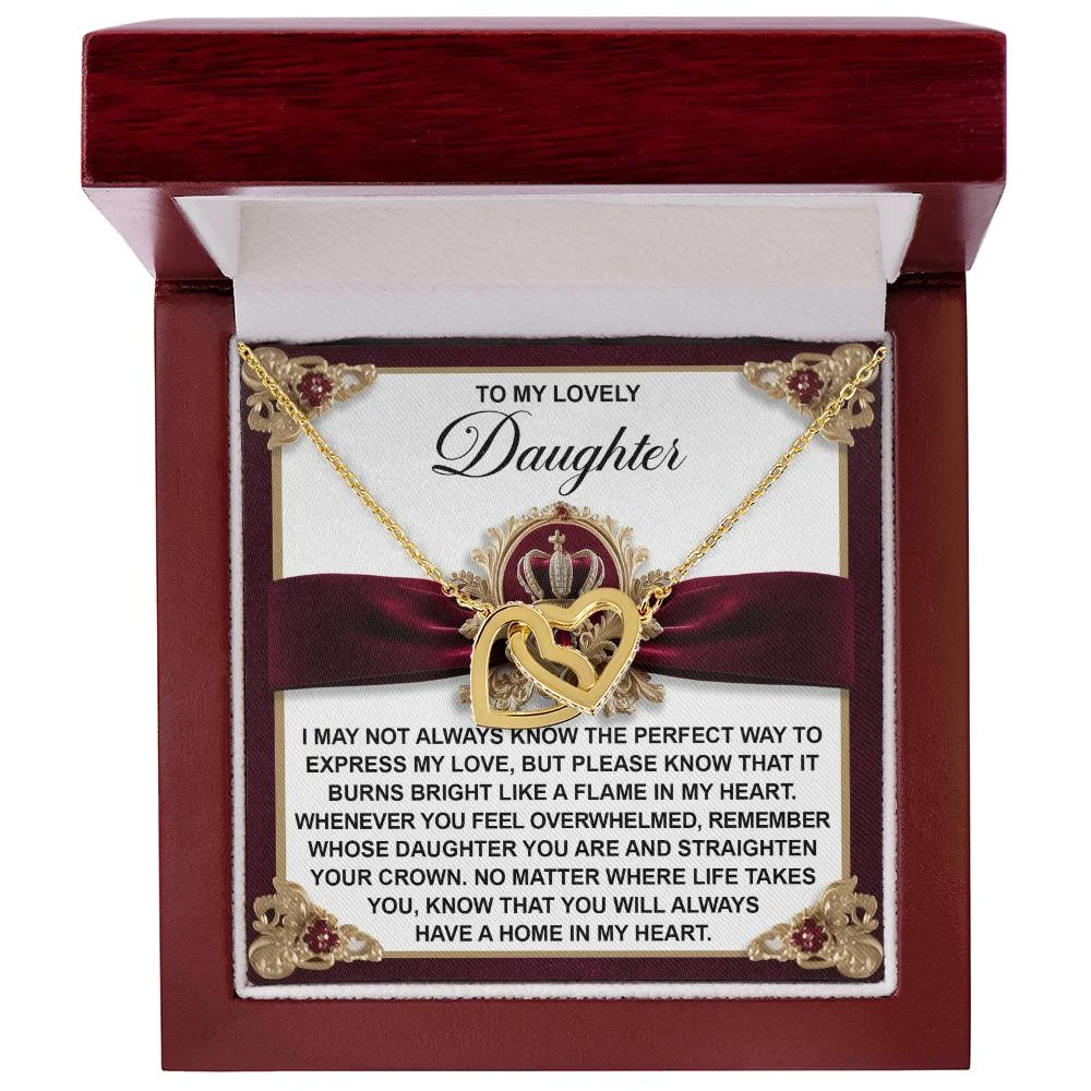 Interlocking Hearts – A Symbol of a Parent’s Endless Love ❤️ Two hearts, forever linked — just like the unbreakable bond between parent and child.. Featuring two lovely hearts embellished with cubic zirconia crystals, this Interlocking Hearts necklace is the perfect accessory for everyday wear. This elegant necklace is more than a gift — it’s a daily reminder that no matter where life leads, your heart is always with them.