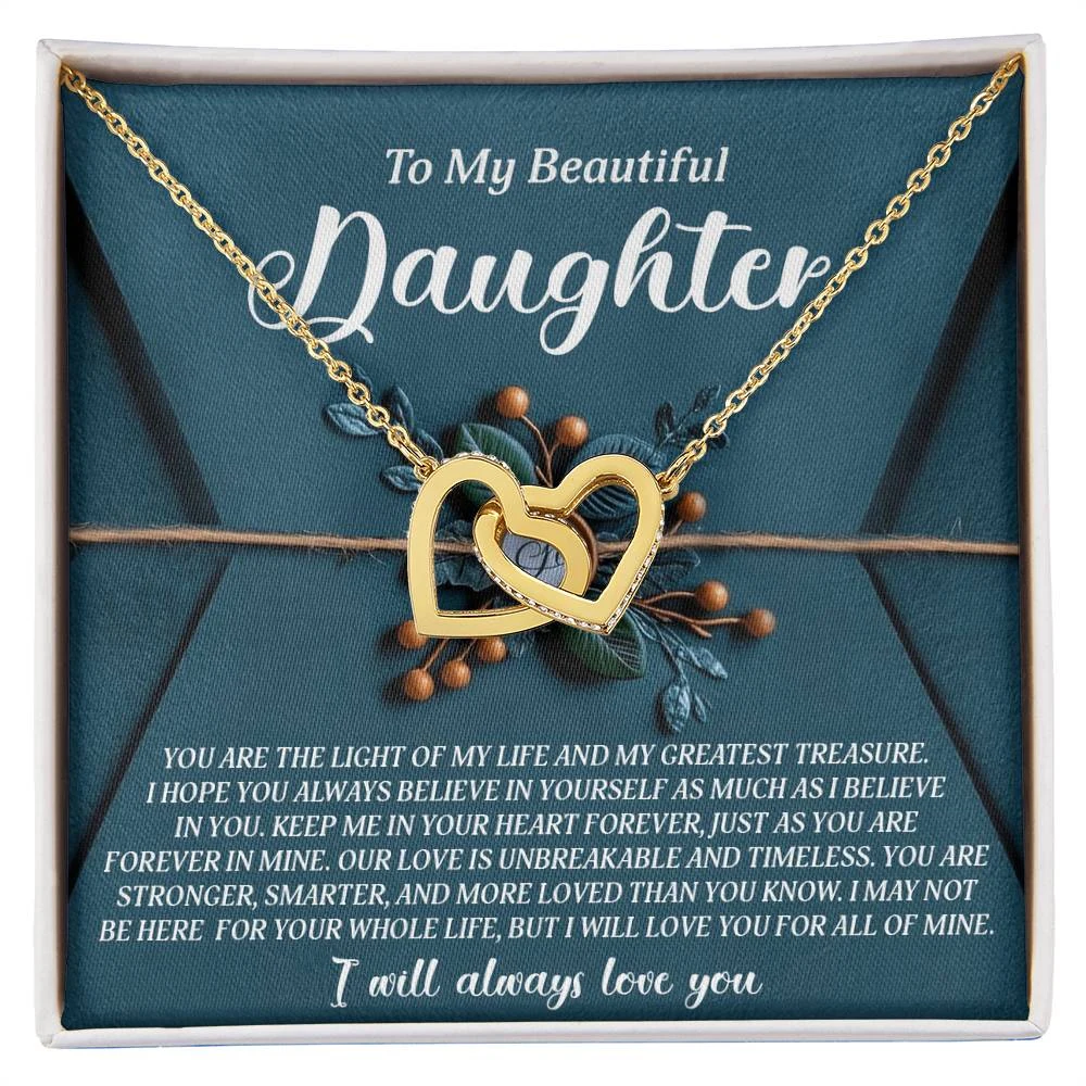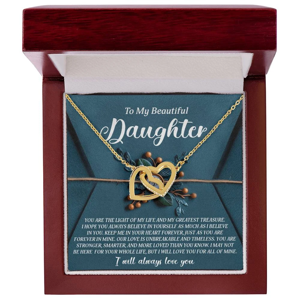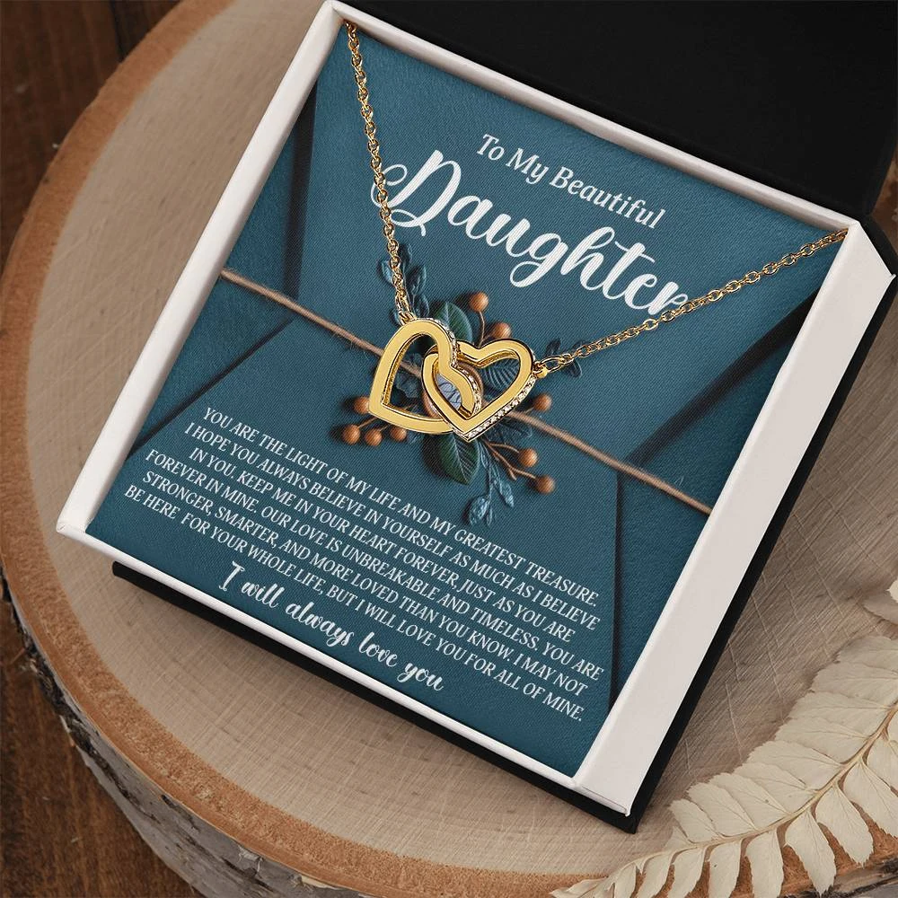 Interlocking Hearts – A Symbol of a Parent’s Endless Love ❤️ Two hearts, forever linked — just like the unbreakable bond between parent and child.. Featuring two lovely hearts embellished with cubic zirconia crystals, this Interlocking Hearts necklace is the perfect accessory for everyday wear. This elegant necklace is more than a gift — it’s a daily reminder that no matter where life leads, your heart is always with them.