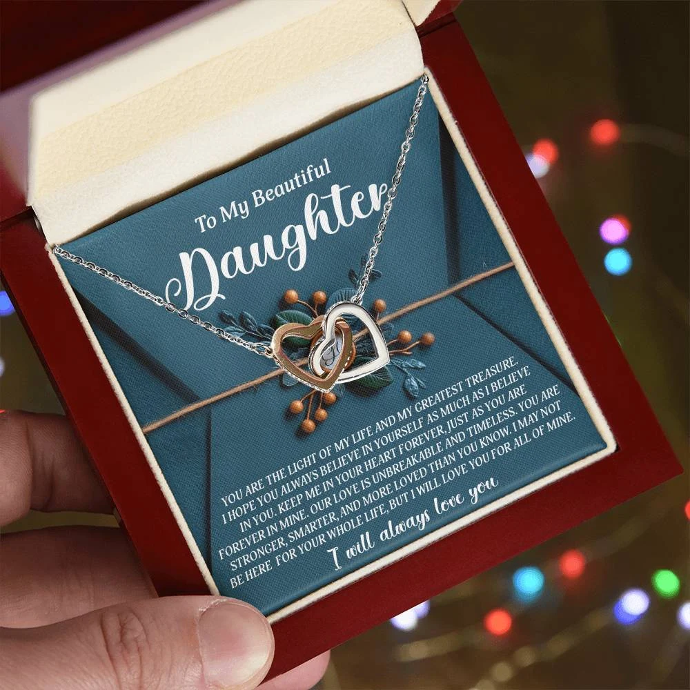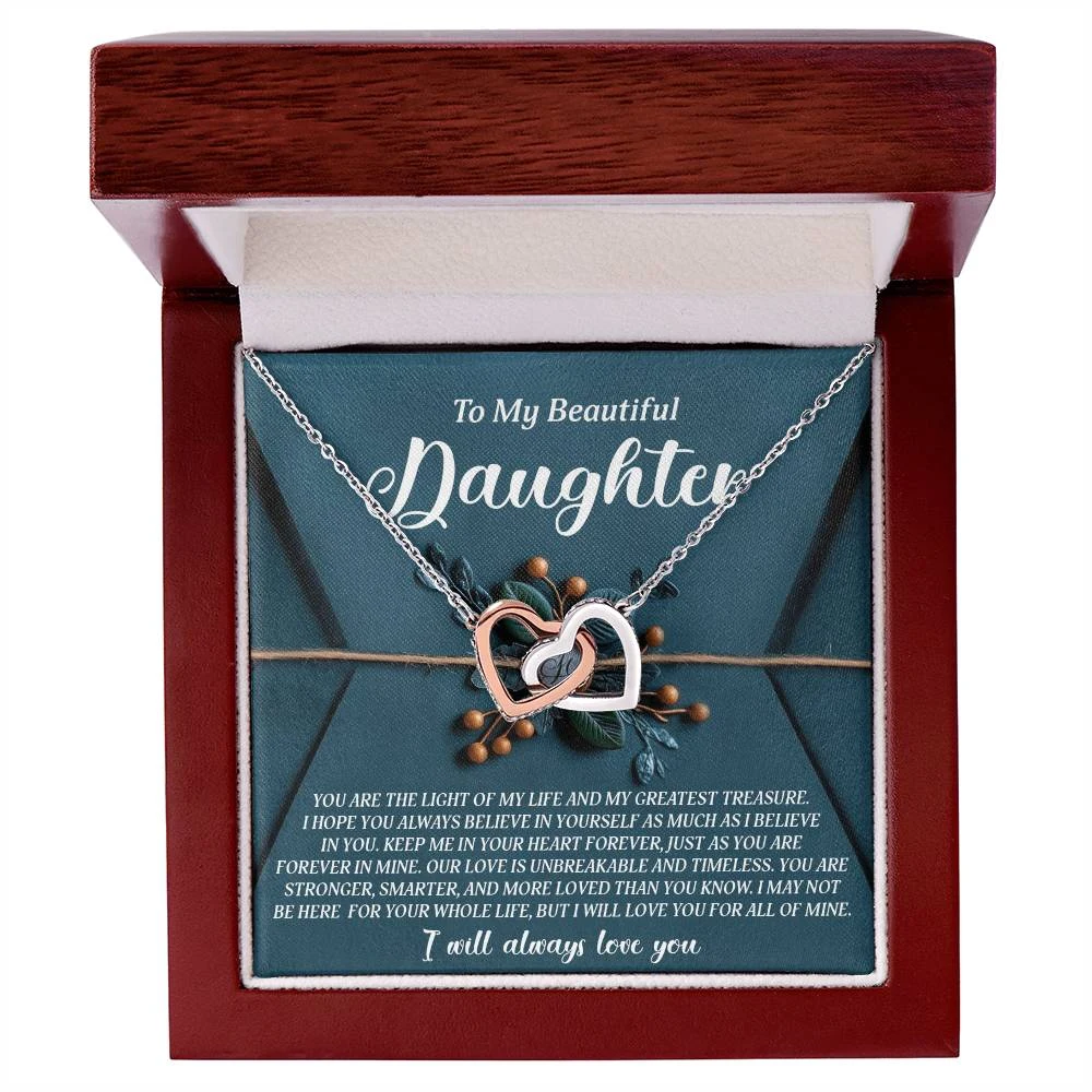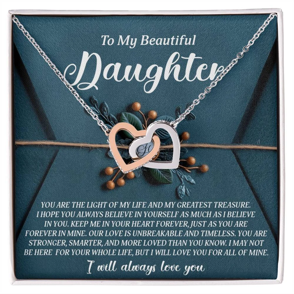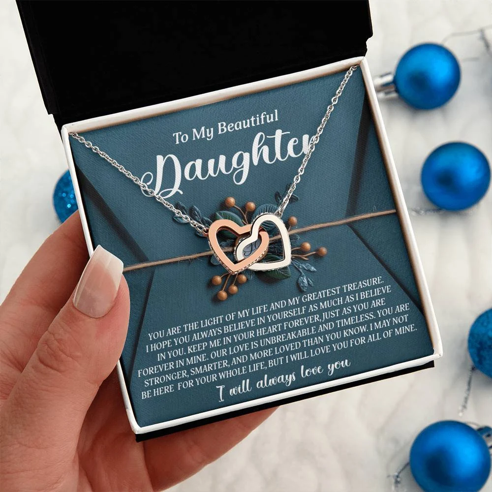 Interlocking Hearts – A Symbol of a Parent’s Endless Love ❤️ Two hearts, forever linked — just like the unbreakable bond between parent and child.. Featuring two lovely hearts embellished with cubic zirconia crystals, this Interlocking Hearts necklace is the perfect accessory for everyday wear. This elegant necklace is more than a gift — it’s a daily reminder that no matter where life leads, your heart is always with them.