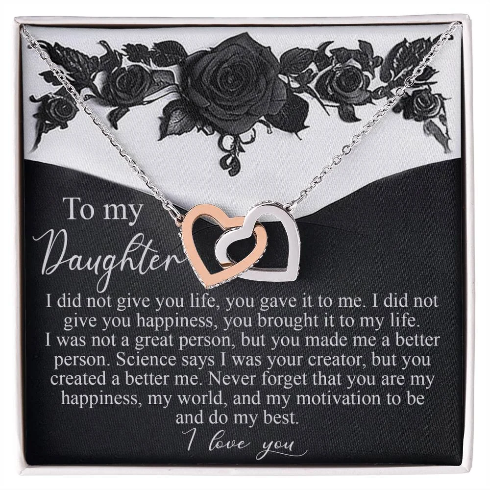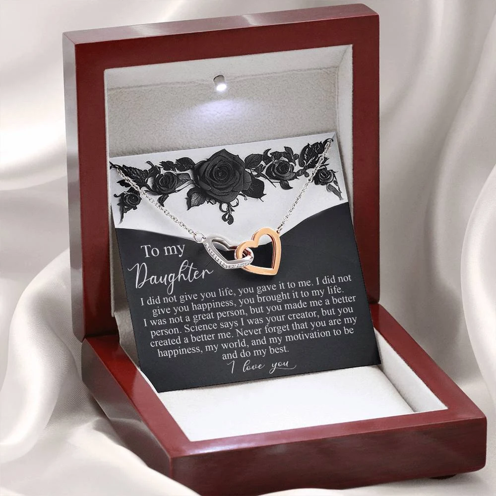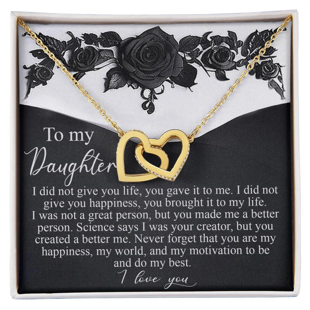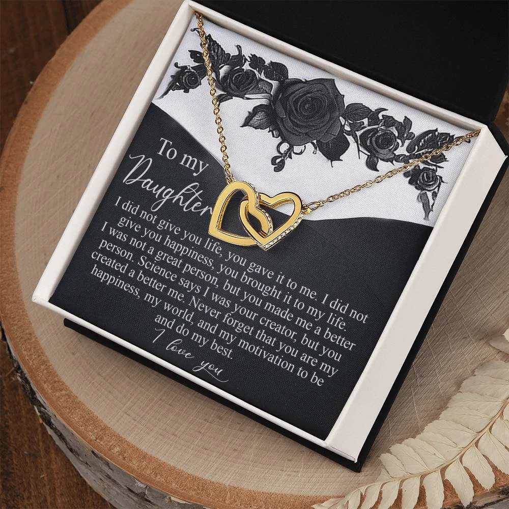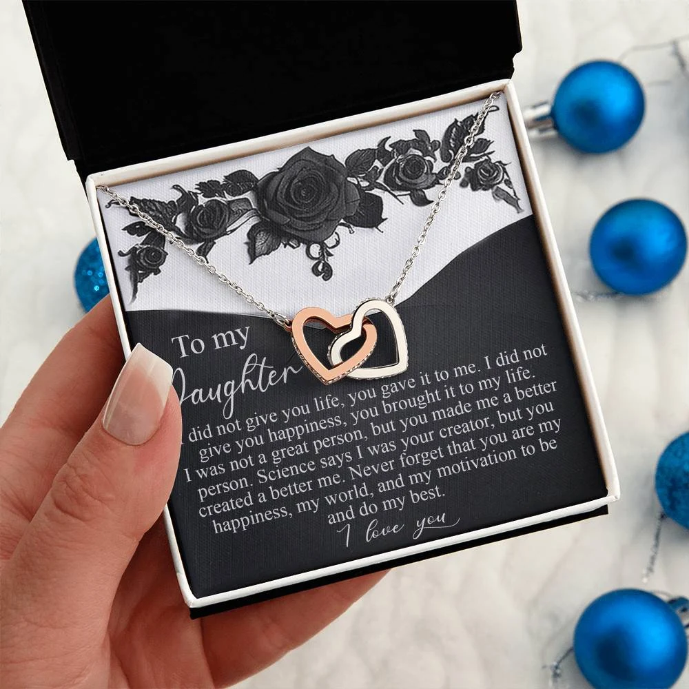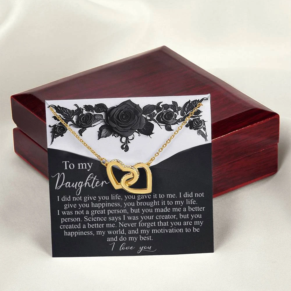 Interlocking Hearts – A Symbol of a Parent’s Endless Love ❤️ Two hearts, forever linked — just like the unbreakable bond between parent and child.. Featuring two lovely hearts embellished with cubic zirconia crystals, this Interlocking Hearts necklace is the perfect accessory for everyday wear. This elegant necklace is more than a gift — it’s a daily reminder that no matter where life leads, your heart is always with them.