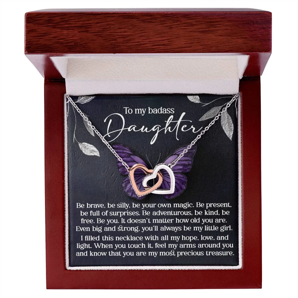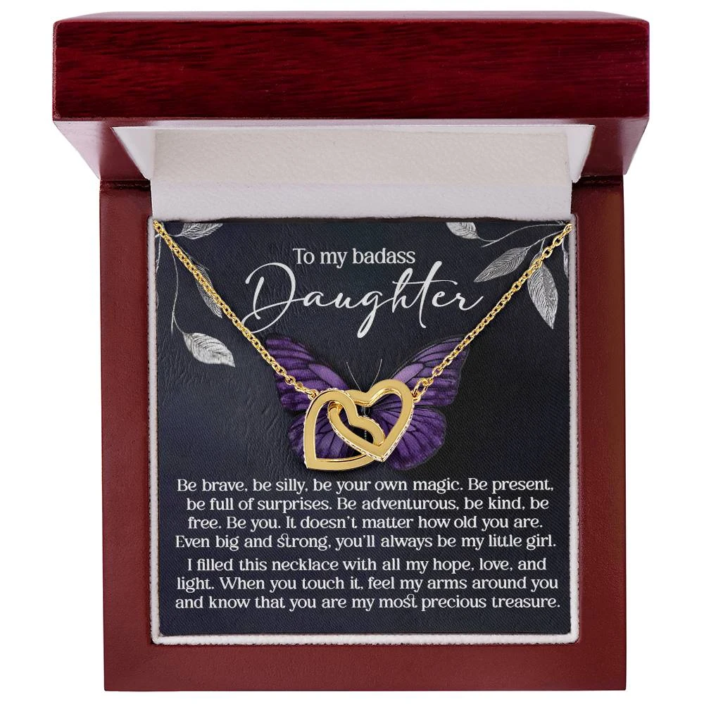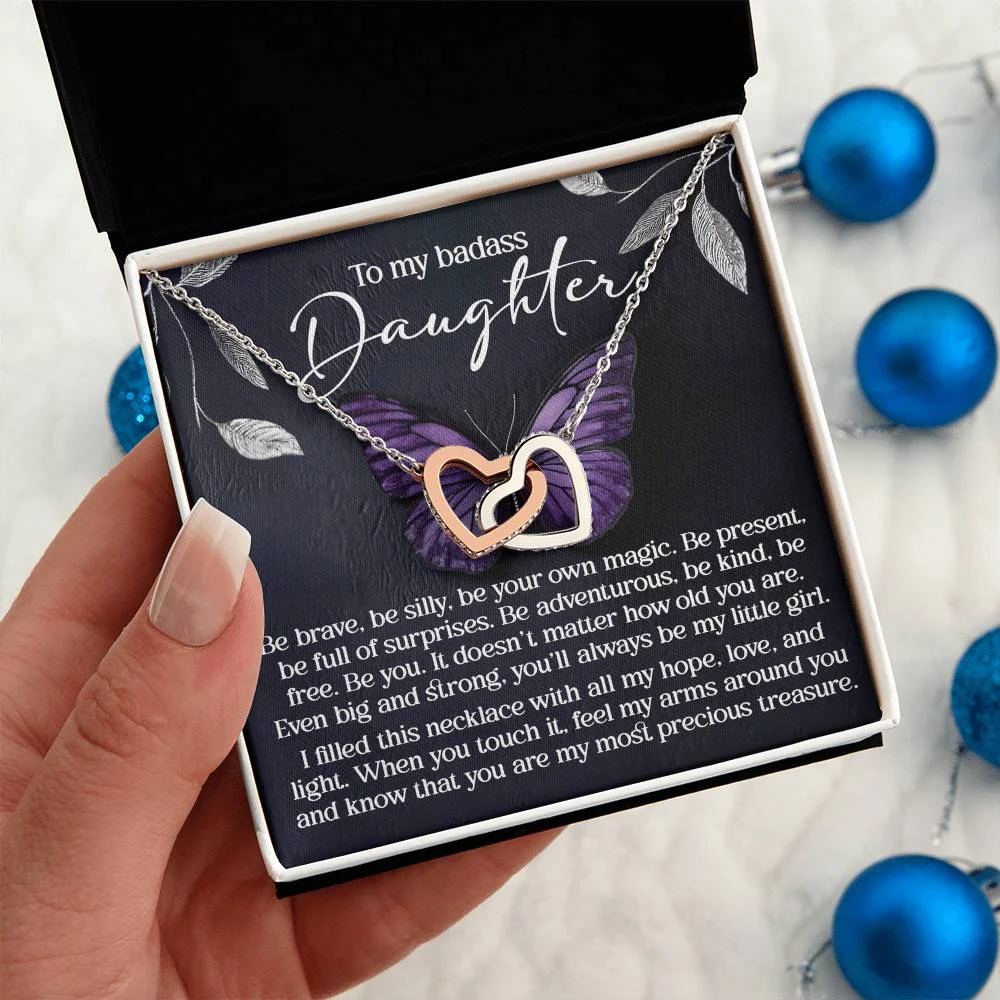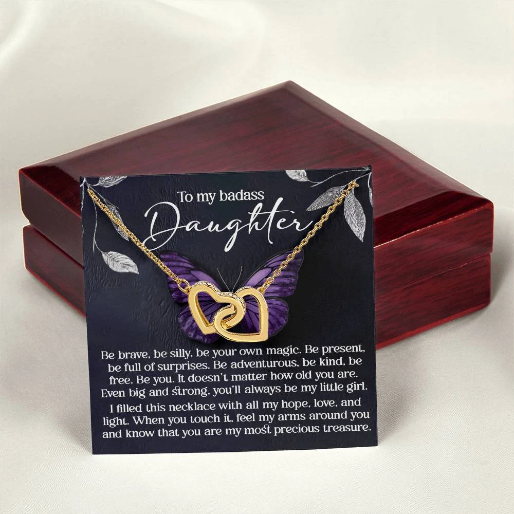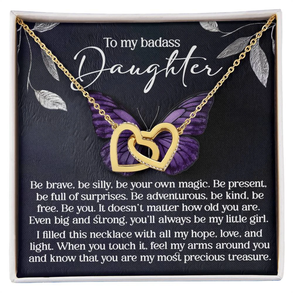 Interlocking Hearts – A Symbol of a Parent’s Endless Love ❤️ Two hearts, forever linked — just like the unbreakable bond between parent and child.. Featuring two lovely hearts embellished with cubic zirconia crystals, this Interlocking Hearts necklace is the perfect accessory for everyday wear. This elegant necklace is more than a gift — it’s a daily reminder that no matter where life leads, your heart is always with them.