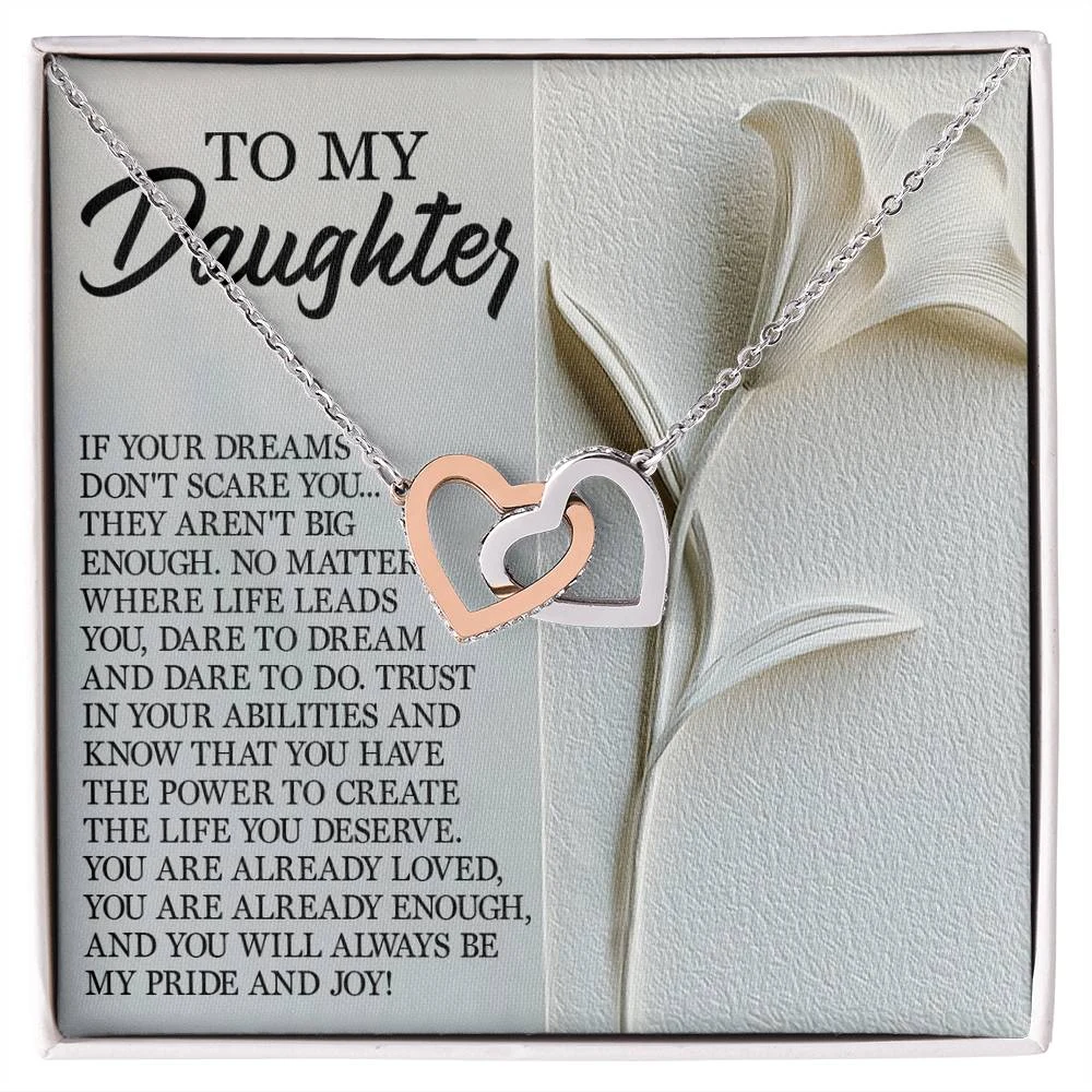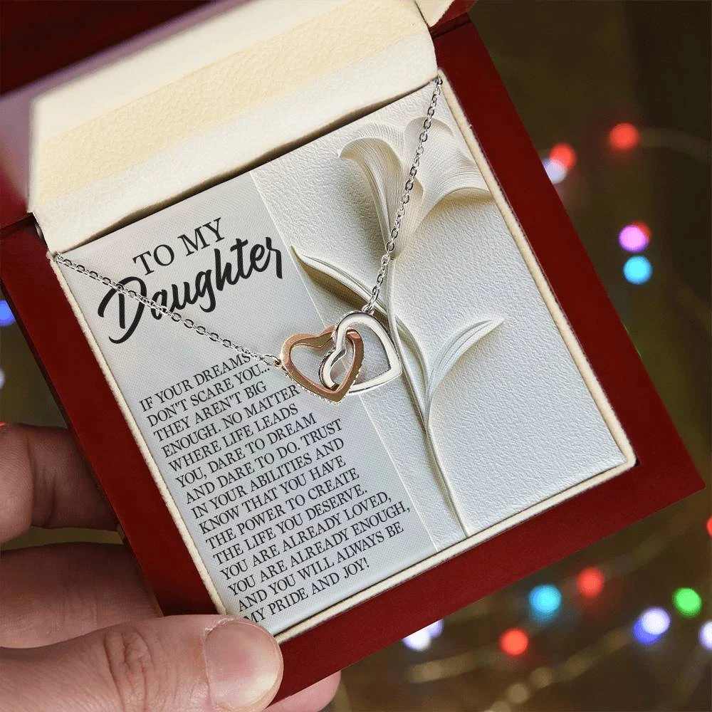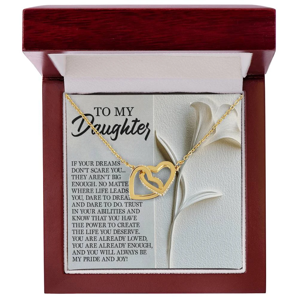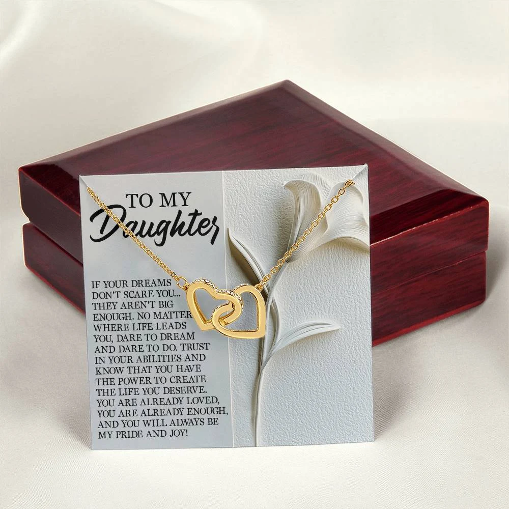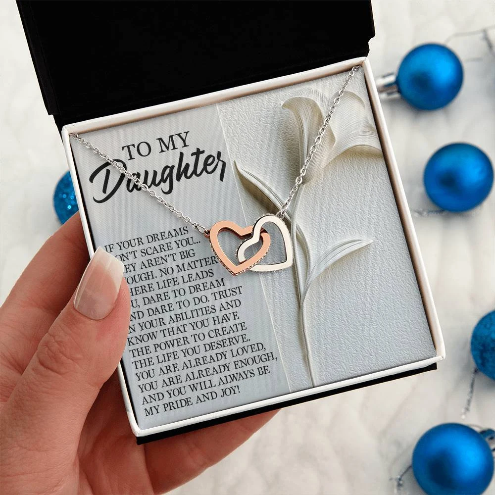 Interlocking Hearts – A Symbol of a Parent’s Endless Love ❤️ Two hearts, forever linked — just like the unbreakable bond between parent and child.. Featuring two lovely hearts embellished with cubic zirconia crystals, this Interlocking Hearts necklace is the perfect accessory for everyday wear. This elegant necklace is more than a gift — it’s a daily reminder that no matter where life leads, your heart is always with them.