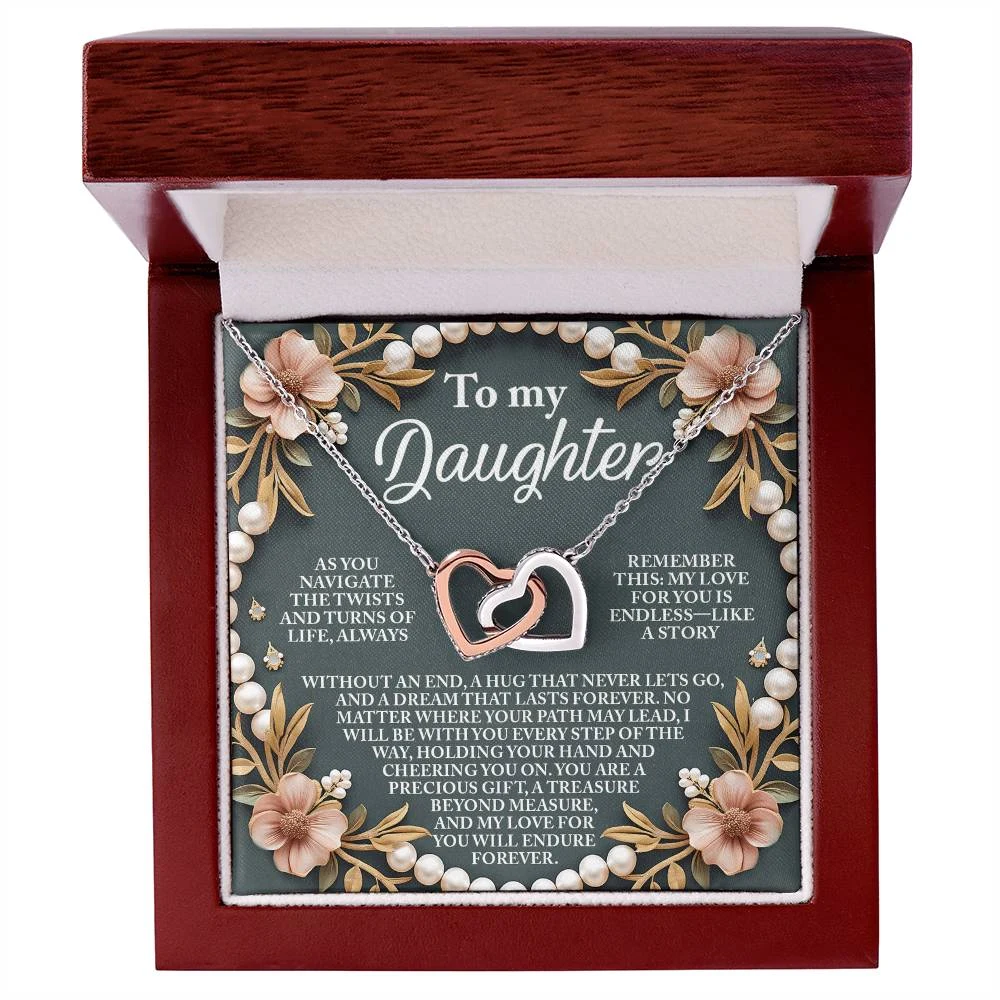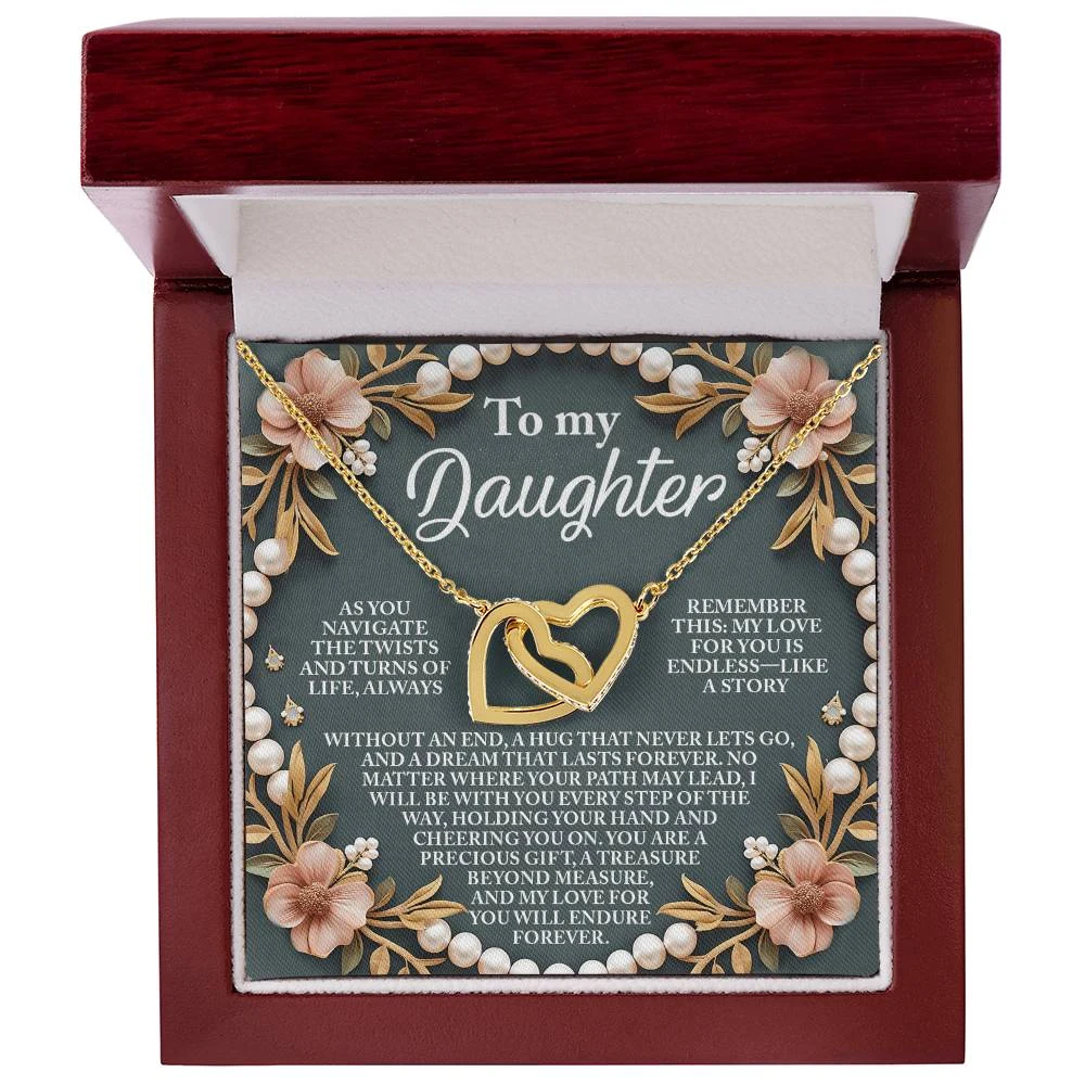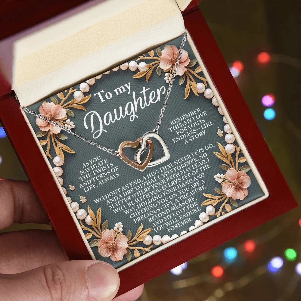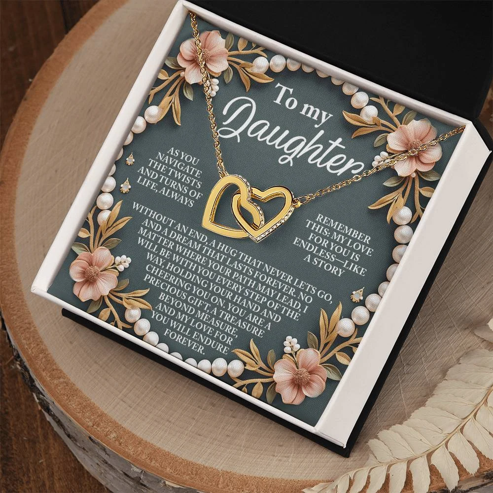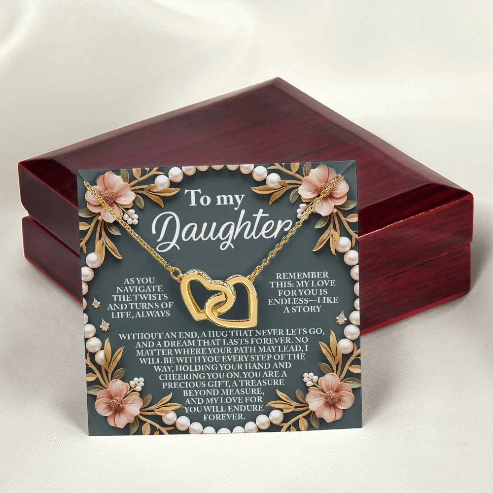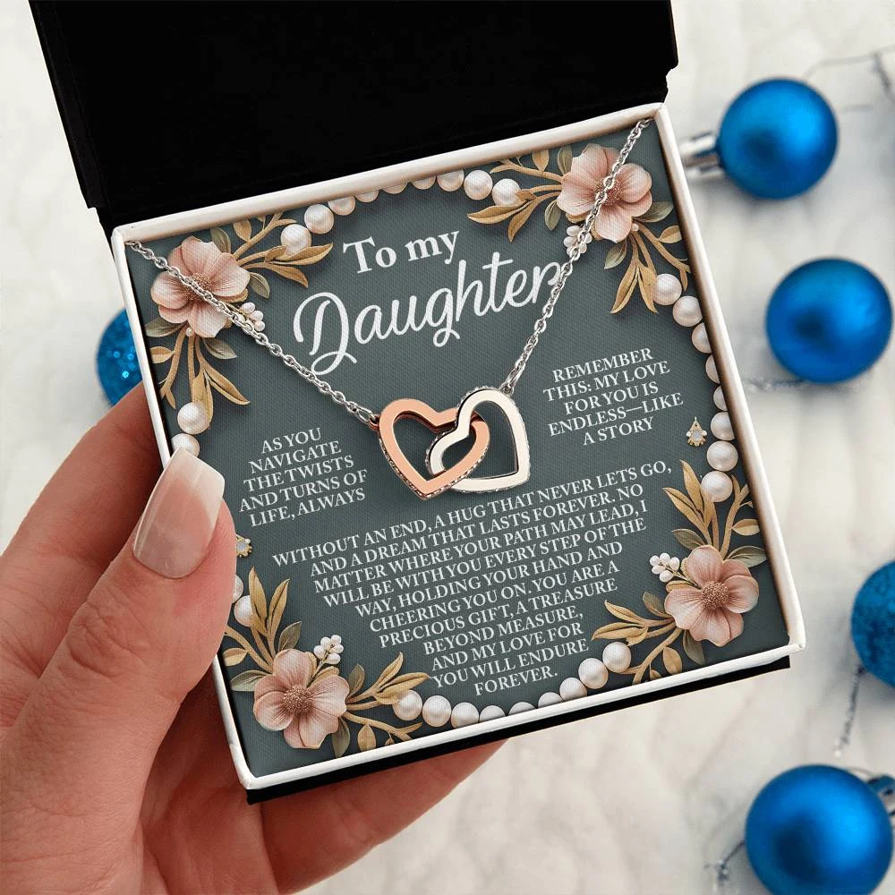 Interlocking Hearts – A Symbol of a Parent’s Endless Love ❤️ Two hearts, forever linked — just like the unbreakable bond between parent and child.. Featuring two lovely hearts embellished with cubic zirconia crystals, this Interlocking Hearts necklace is the perfect accessory for everyday wear. This elegant necklace is more than a gift — it’s a daily reminder that no matter where life leads, your heart is always with them.