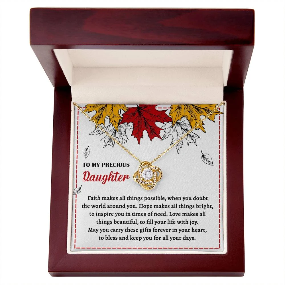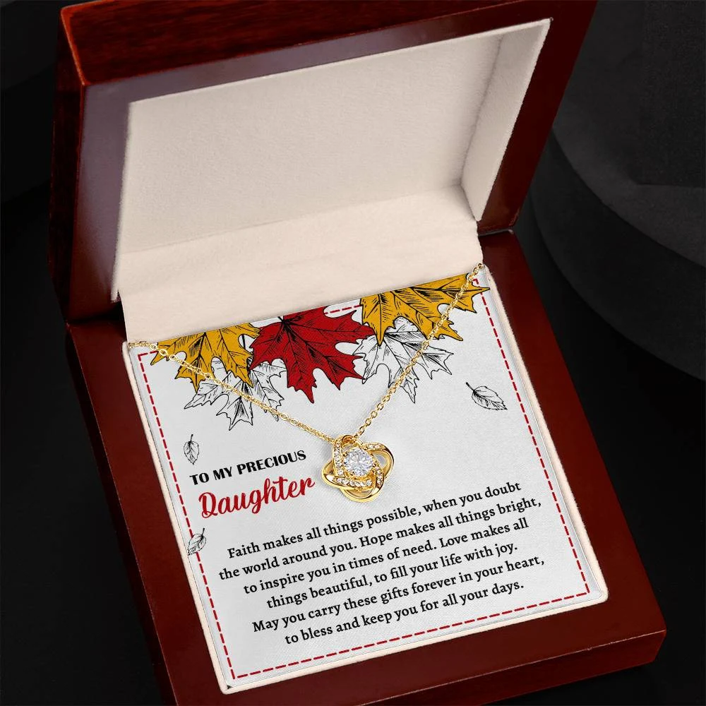 Imagine her reaction receiving this beautiful Love Knot Necklace. Representing an unbreakable bond between two souls, this piece features a beautiful pendant embellished with premium cubic zirconia crystals. Surprise your loved one with this gorgeous gift today!