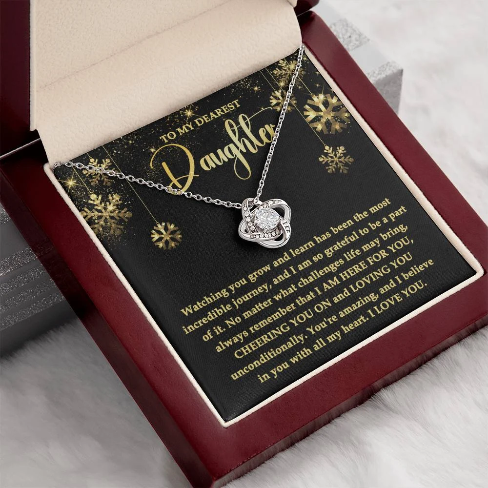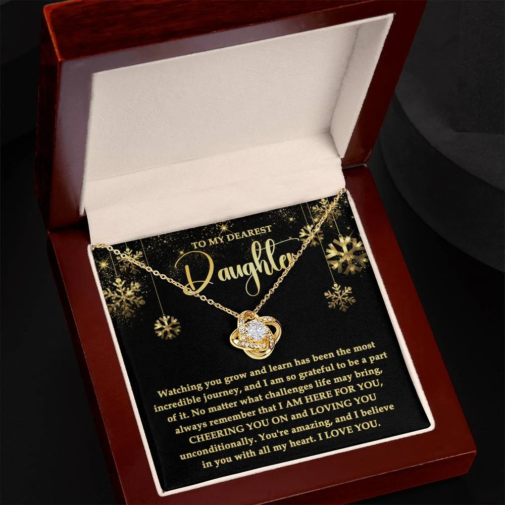 Imagine her reaction receiving this beautiful Love Knot Necklace. Representing an unbreakable bond between two souls, this piece features a beautiful pendant embellished with premium cubic zirconia crystals. Surprise your loved one with this gorgeous gift today!
