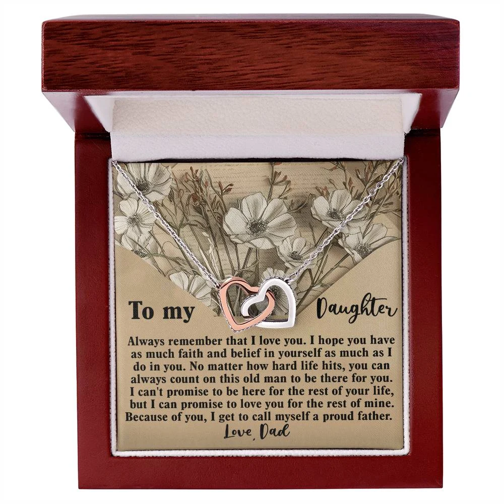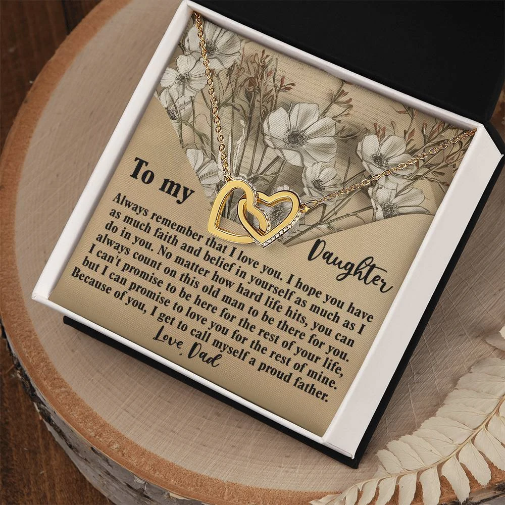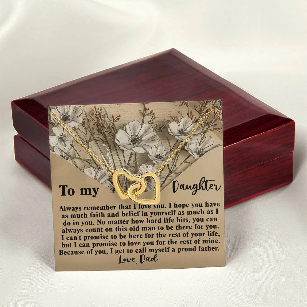 Interlocking Hearts – A Symbol of a Parent’s Endless Love ❤️ Two hearts, forever linked — just like the unbreakable bond between parent and child.. Featuring two lovely hearts embellished with cubic zirconia crystals, this Interlocking Hearts necklace is the perfect accessory for everyday wear. This elegant necklace is more than a gift — it’s a daily reminder that no matter where life leads, your heart is always with them.