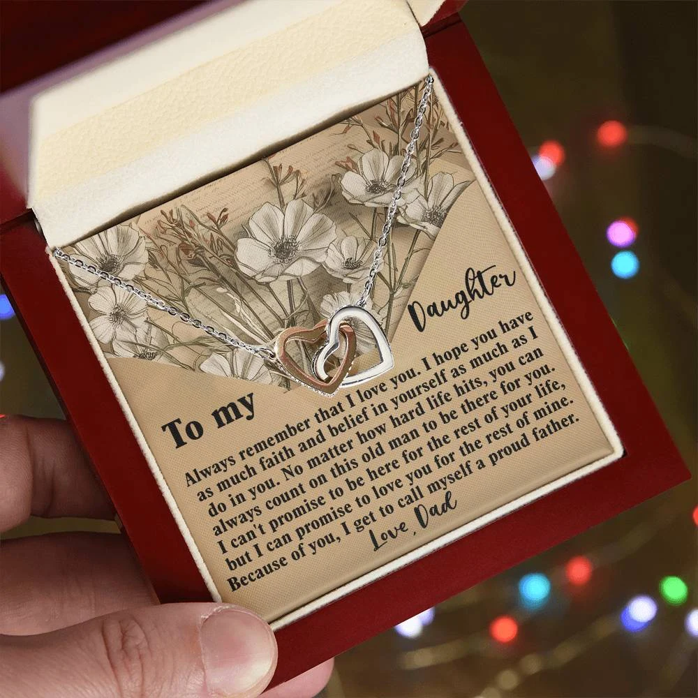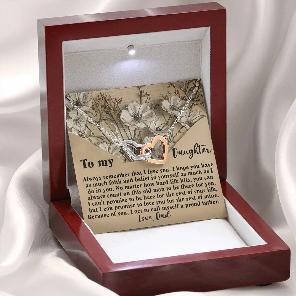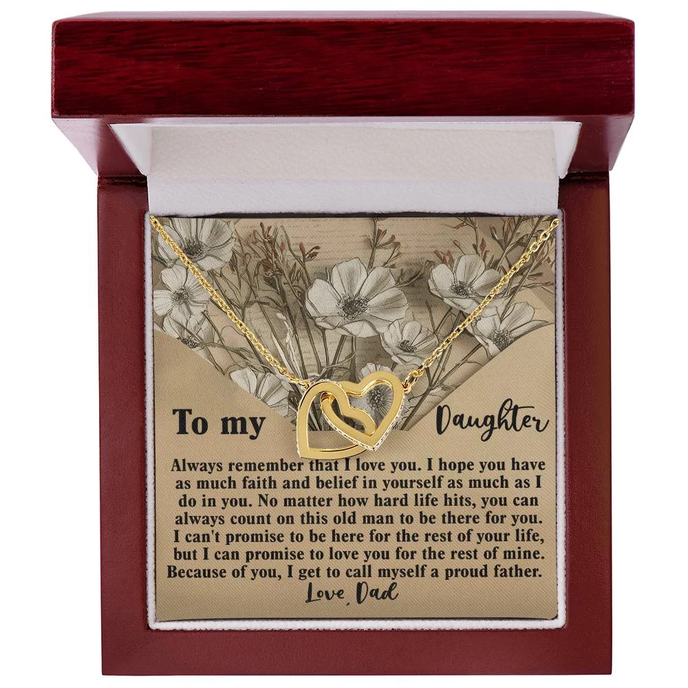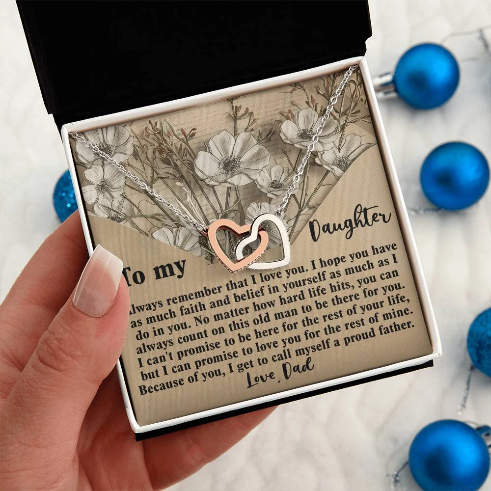Interlocking Hearts – A Symbol of a Parent’s Endless Love ❤️ Two hearts, forever linked — just like the unbreakable bond between parent and child.. Featuring two lovely hearts embellished with cubic zirconia crystals, this Interlocking Hearts necklace is the perfect accessory for everyday wear. This elegant necklace is more than a gift — it’s a daily reminder that no matter where life leads, your heart is always with them.