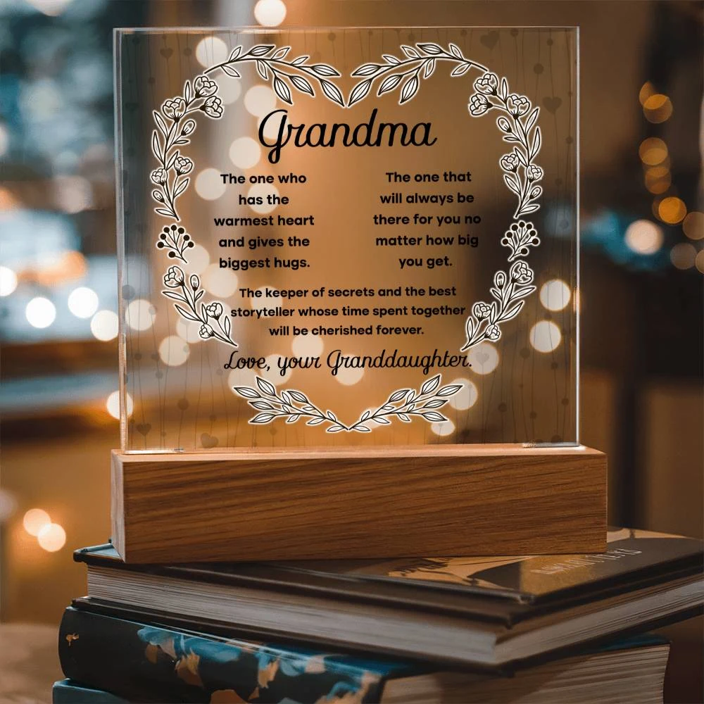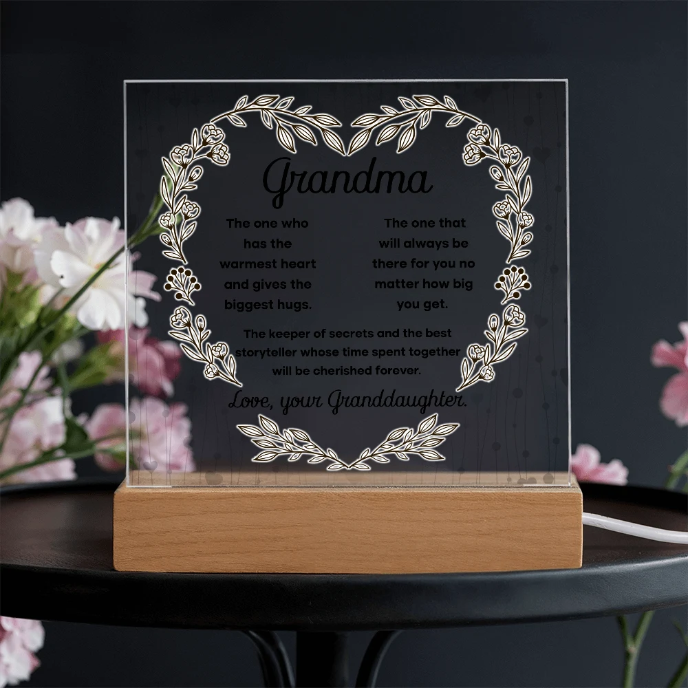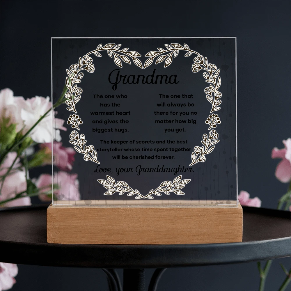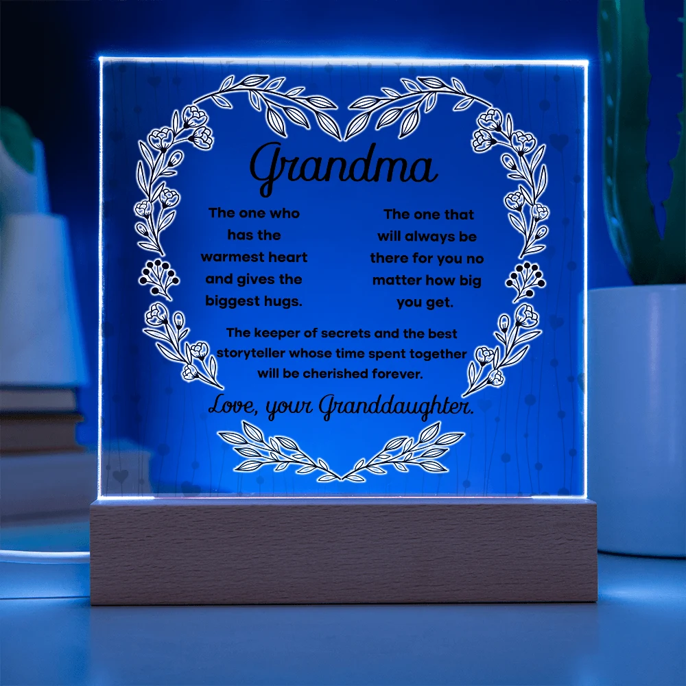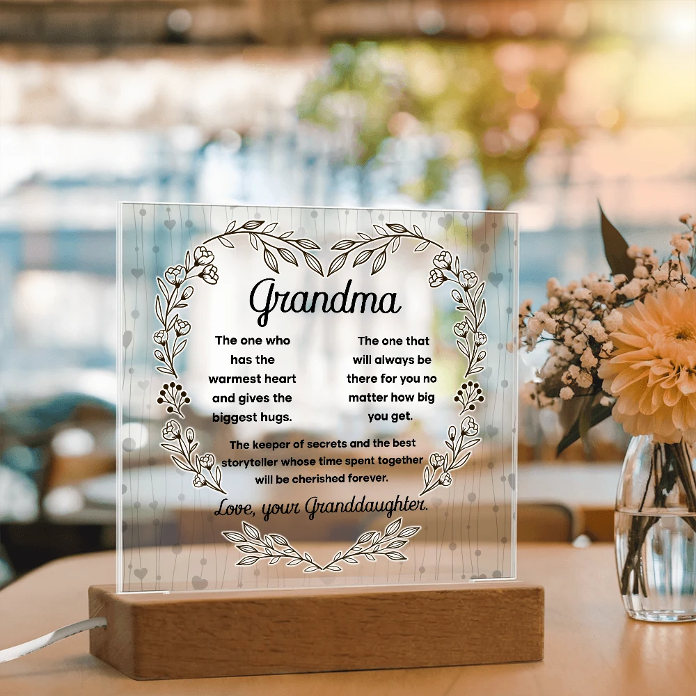 Your plaque will be crafted from premium acrylic with a professionally printed design for a polished look. It comes with a stylish wooden LED base, and you can choose between a USB plug-in option OR a cordless battery-operated option (requires 2 AAA batteries, not included). Both LED bases feature 7 vibrant colors, allowing the user to customize the lighting with various color changes and dynamic cycles.
