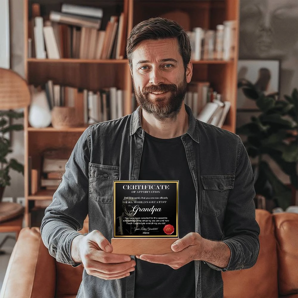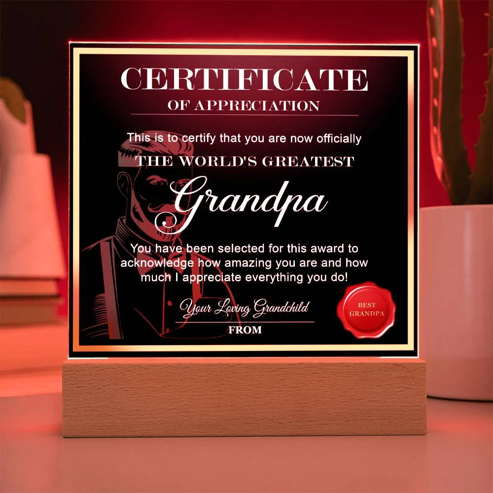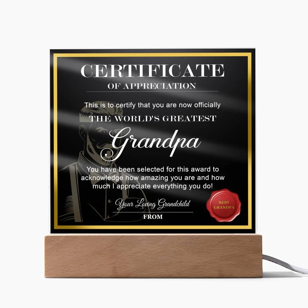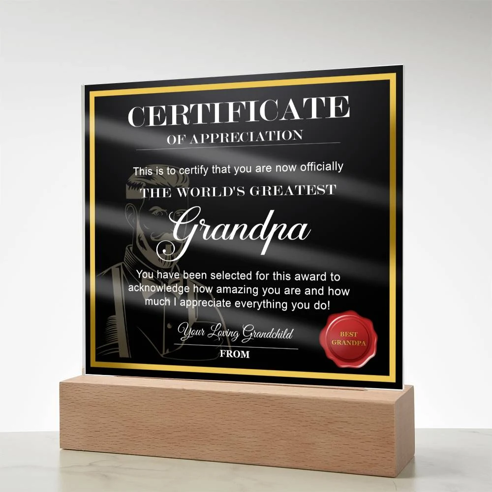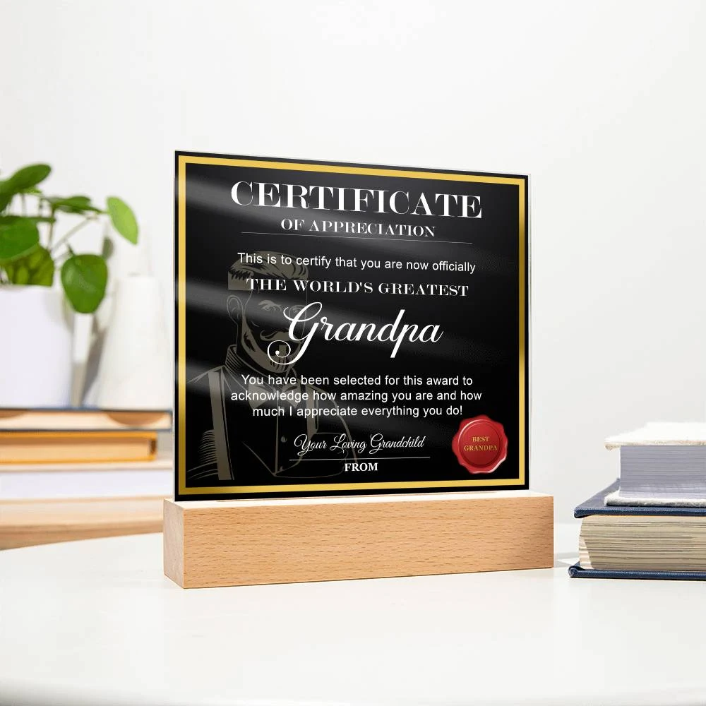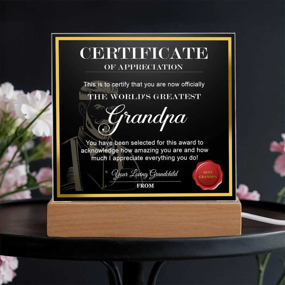Your plaque will be crafted from premium acrylic with a professionally printed design for a polished look. It comes with a stylish wooden LED base, and you can choose between a USB plug-in option OR a cordless battery-operated option (requires 2 AAA batteries, not included). Both LED bases feature 7 vibrant colors, allowing the user to customize the lighting with various color changes and dynamic cycles.