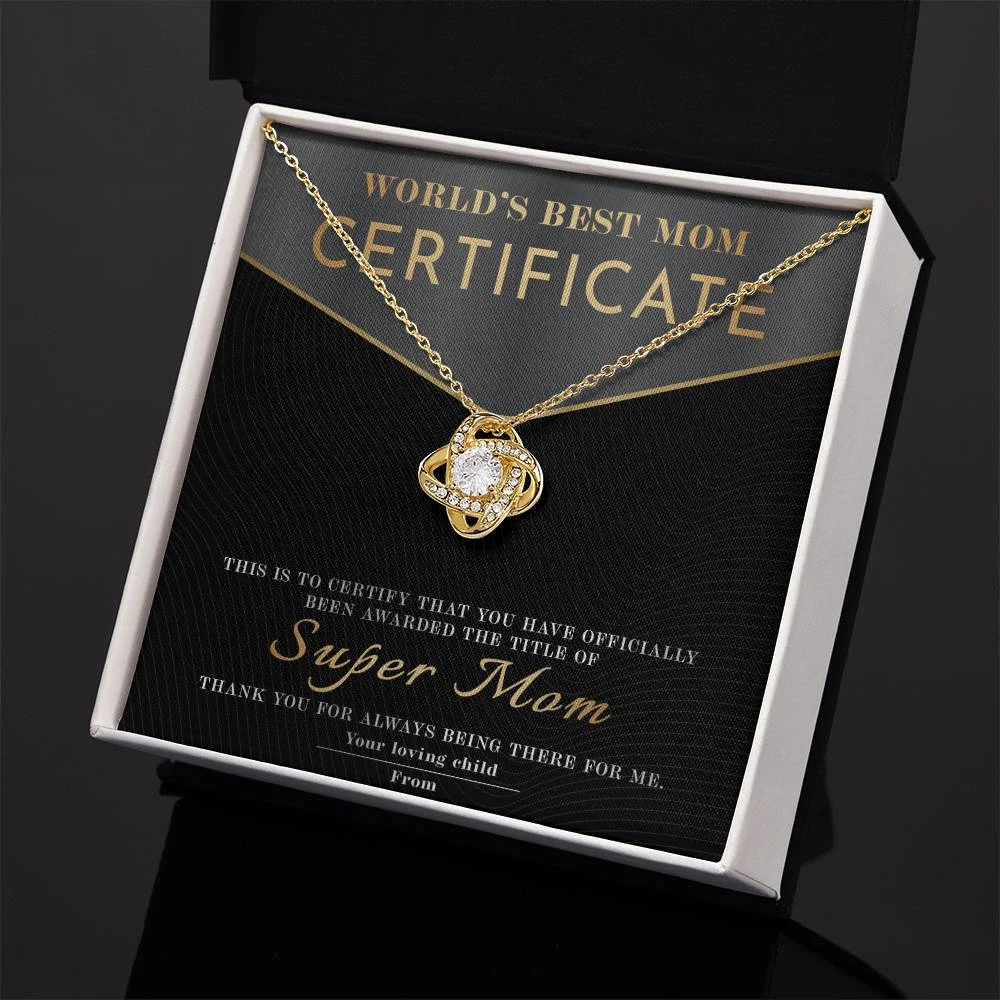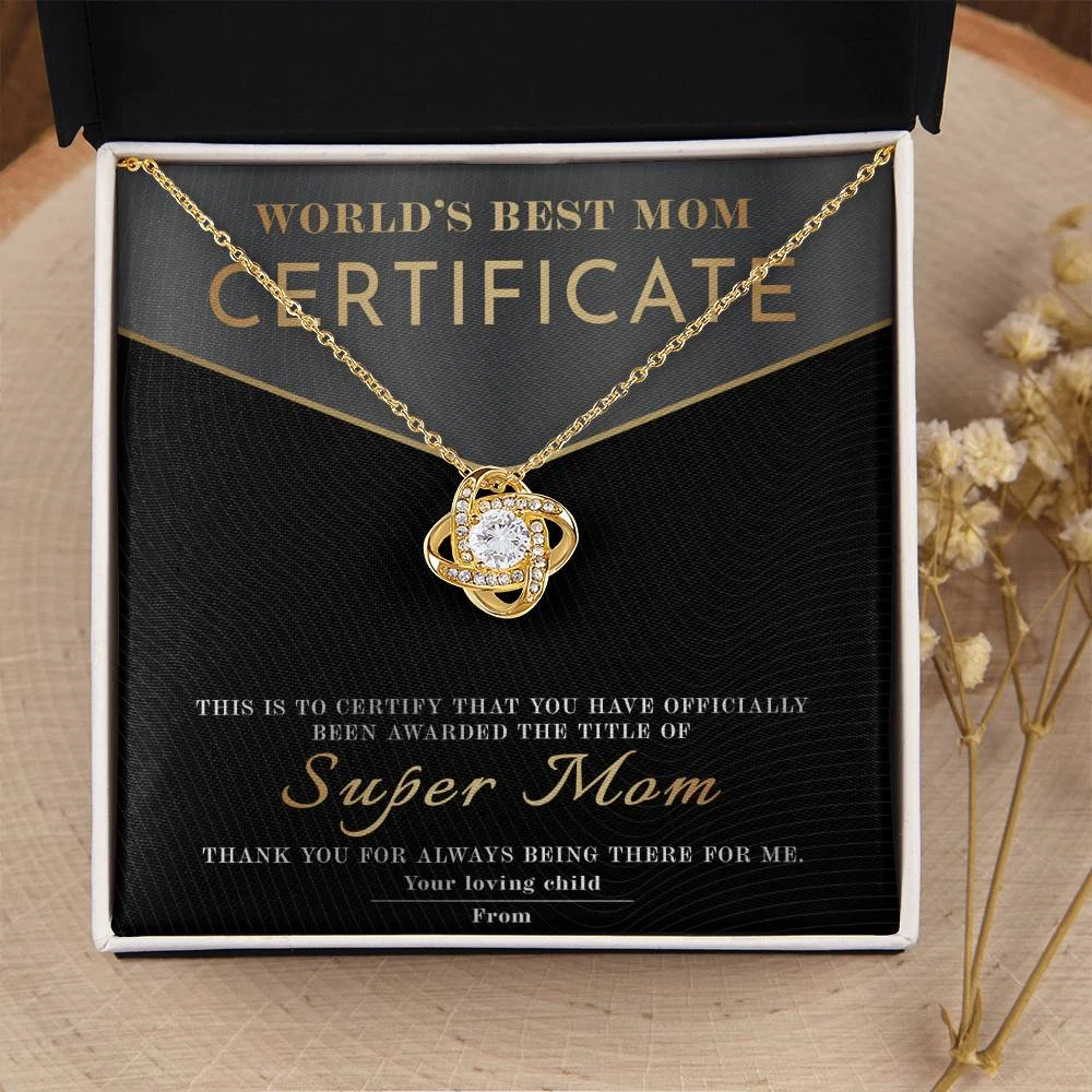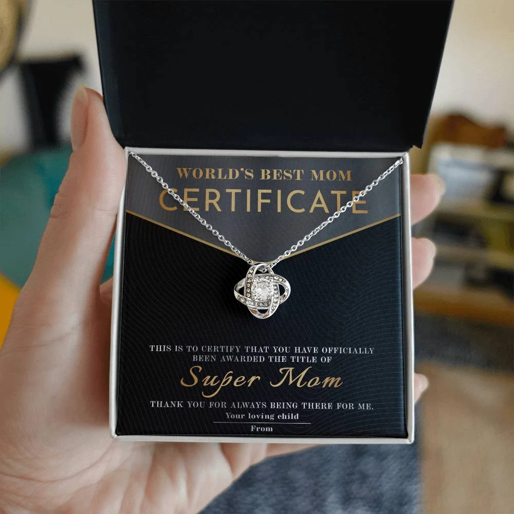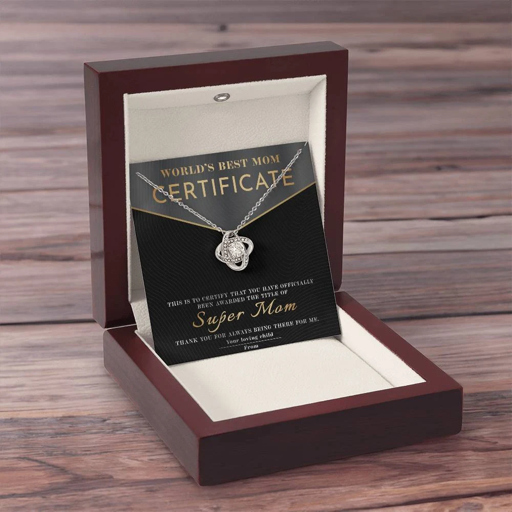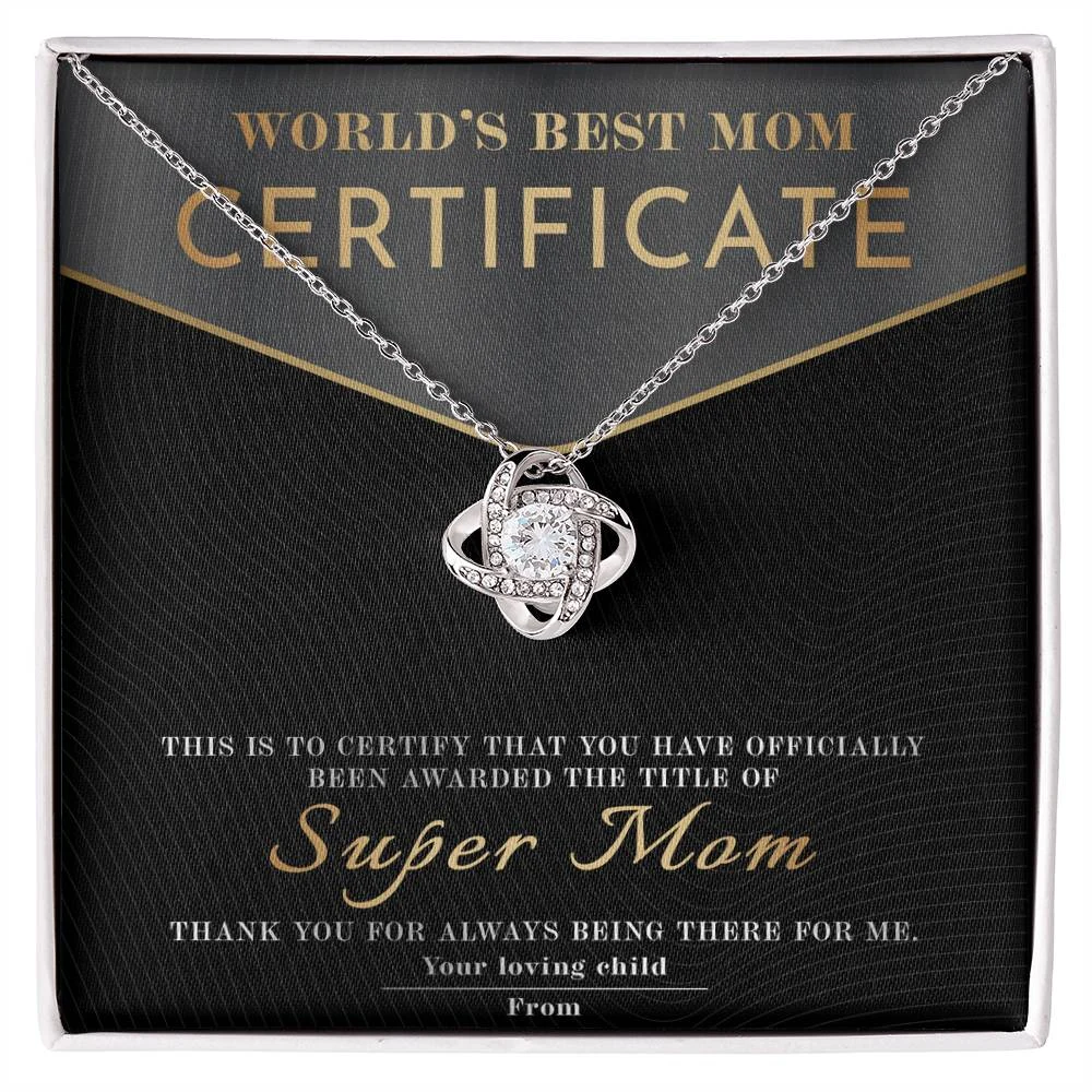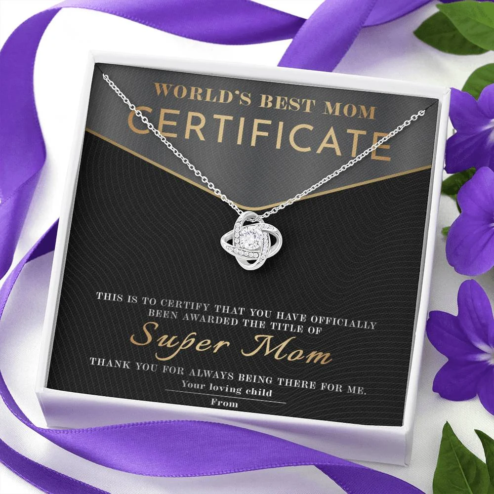 Meaningful Message Card: “WORLD’S BEST MOM CERTIFICATE – This certificate is proudly presented to Super Mom. In recognition of your endless love, strength, and sacrifices. You’ve been my safe place, my biggest supporter, and my hero. Thank you for always being there for me. With all my love, from your loving child.”
