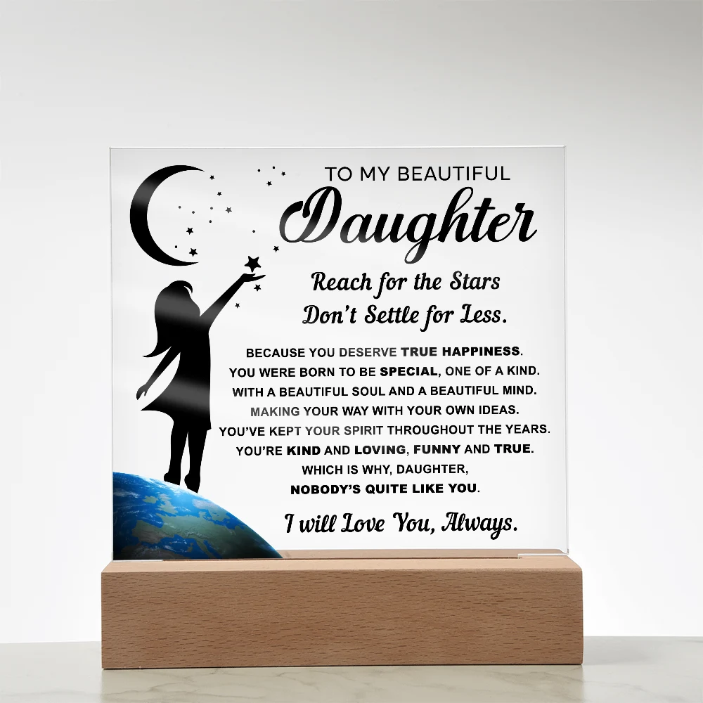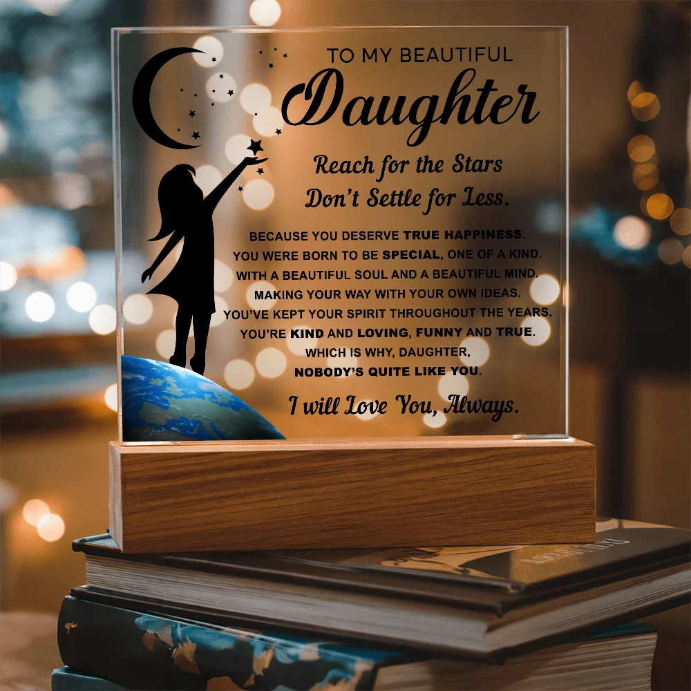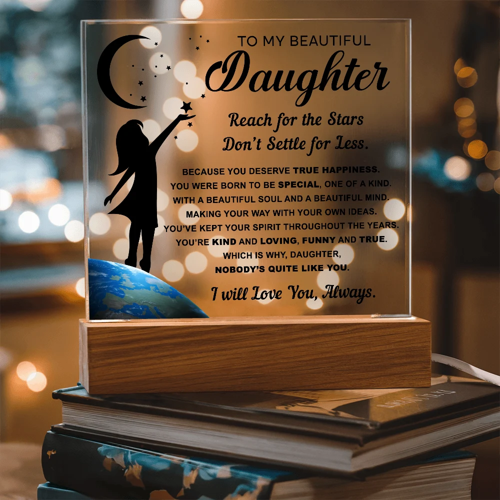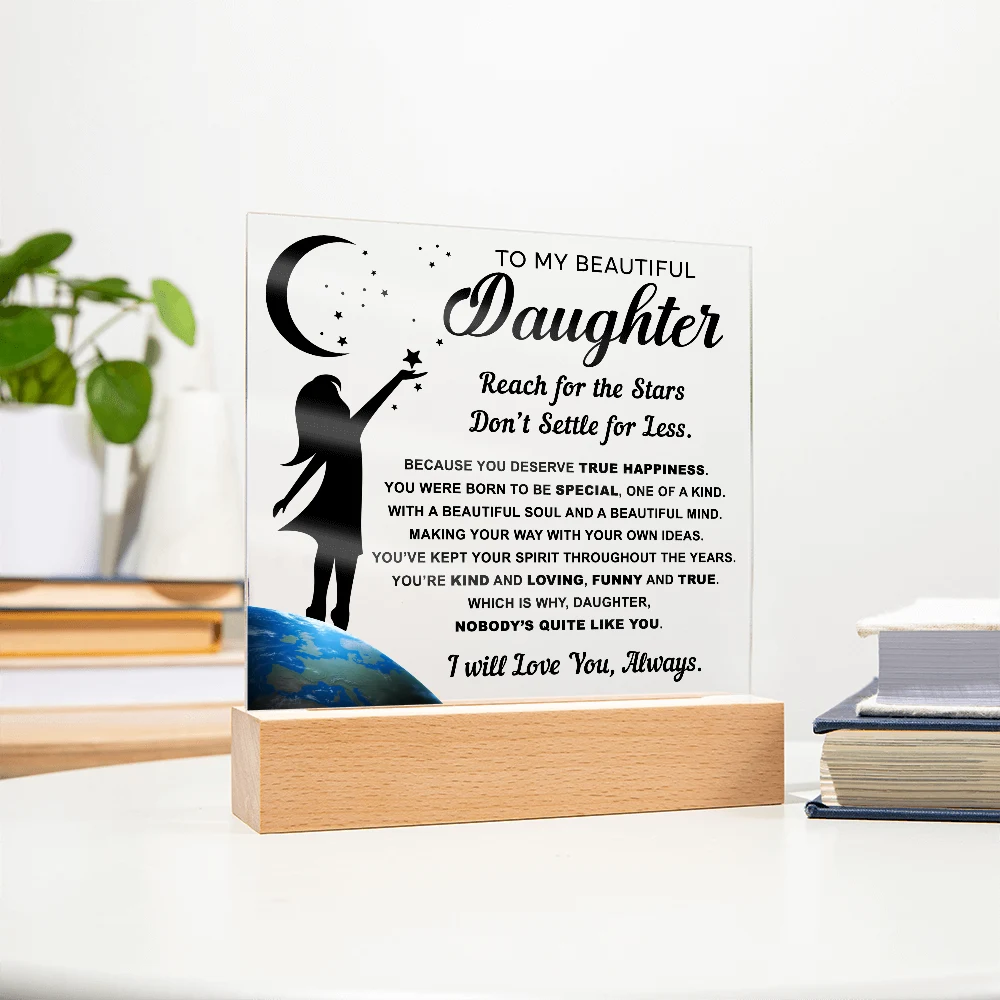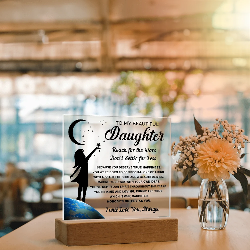 🌙 A heartfelt acrylic keepsake reminding her to reach for the stars and never settle for less.