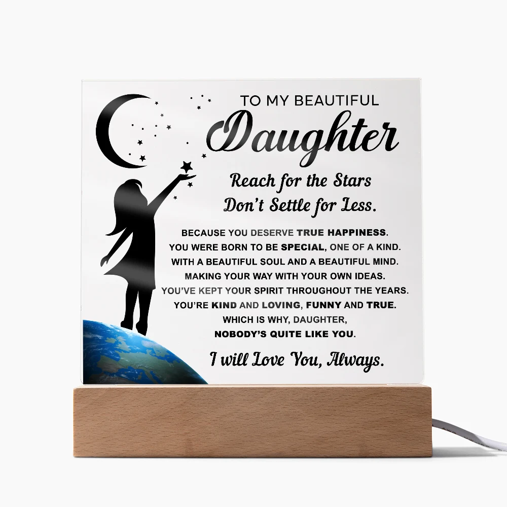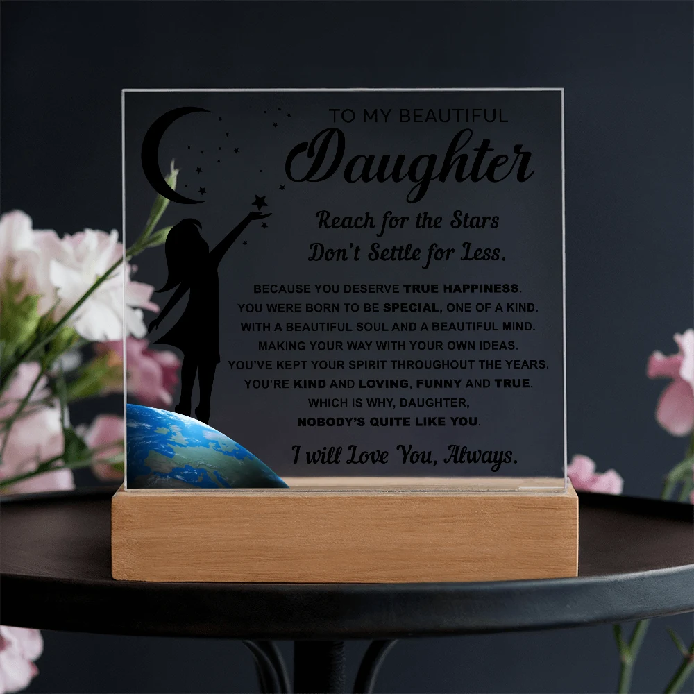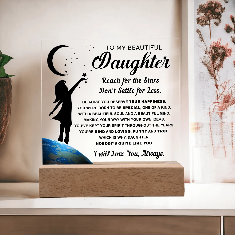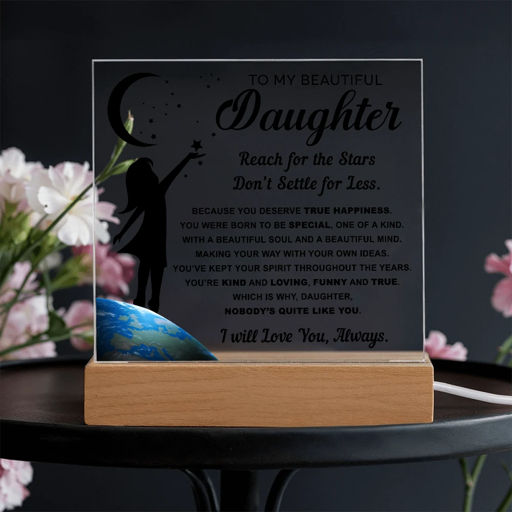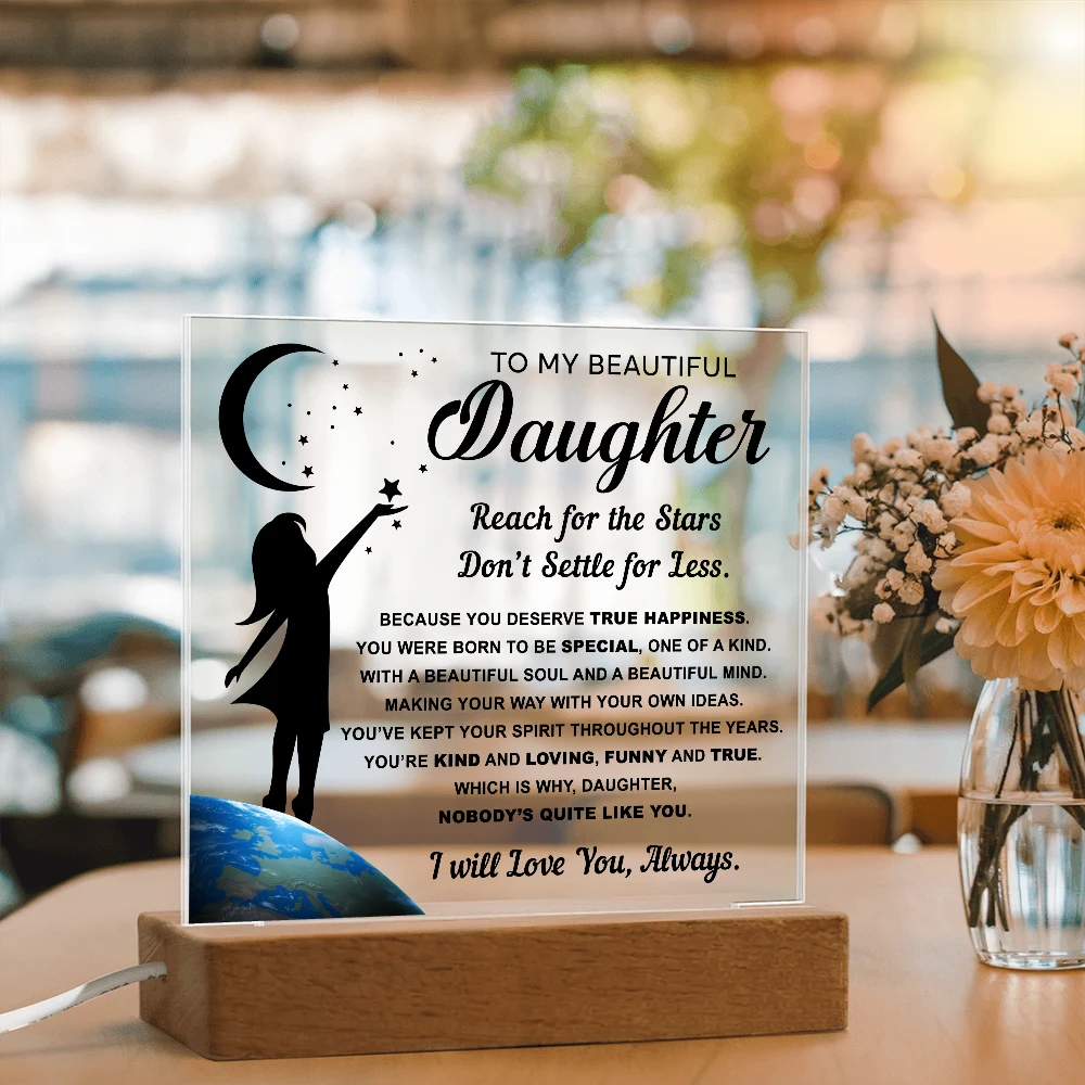 🌙 A heartfelt acrylic keepsake reminding her to reach for the stars and never settle for less.