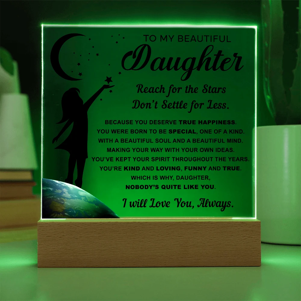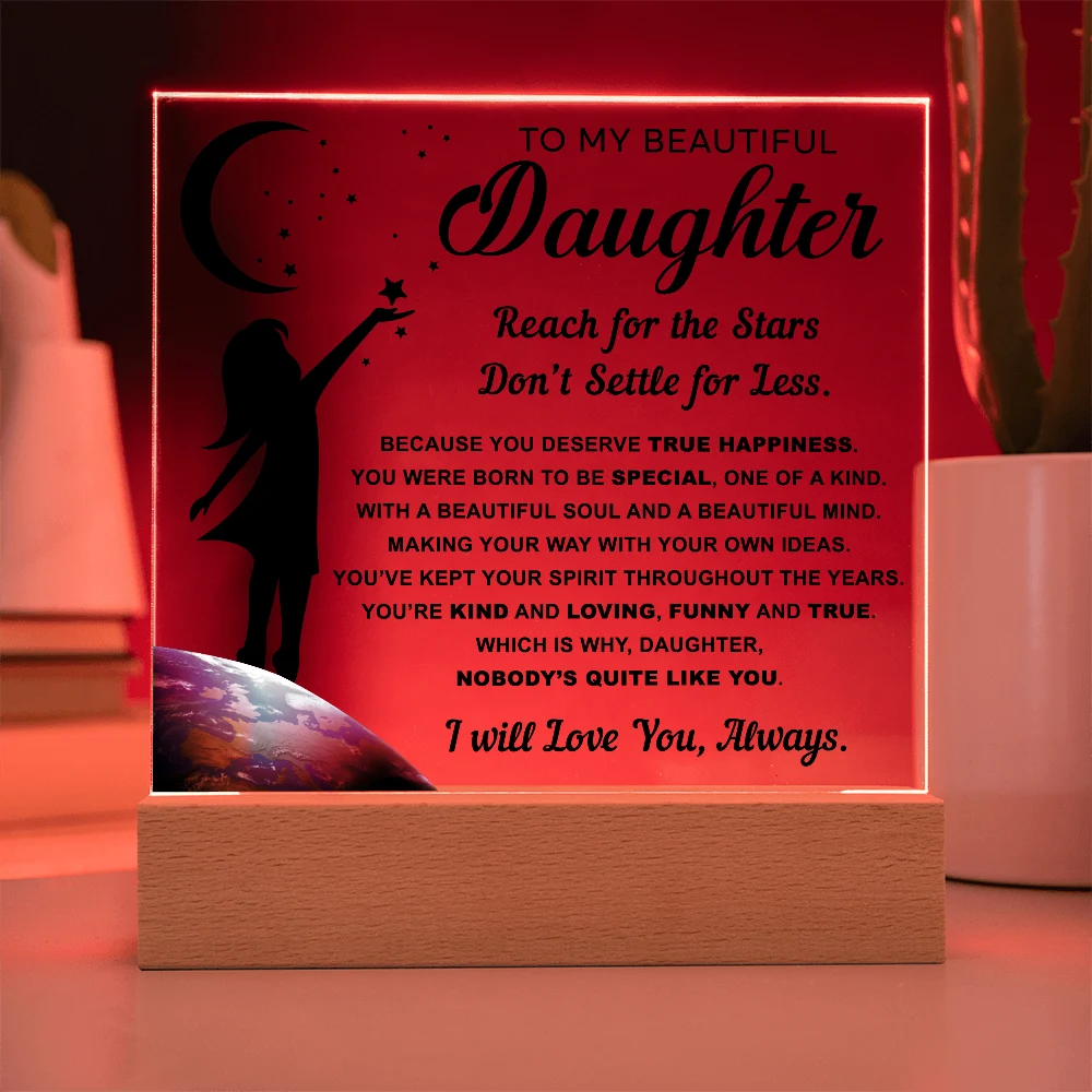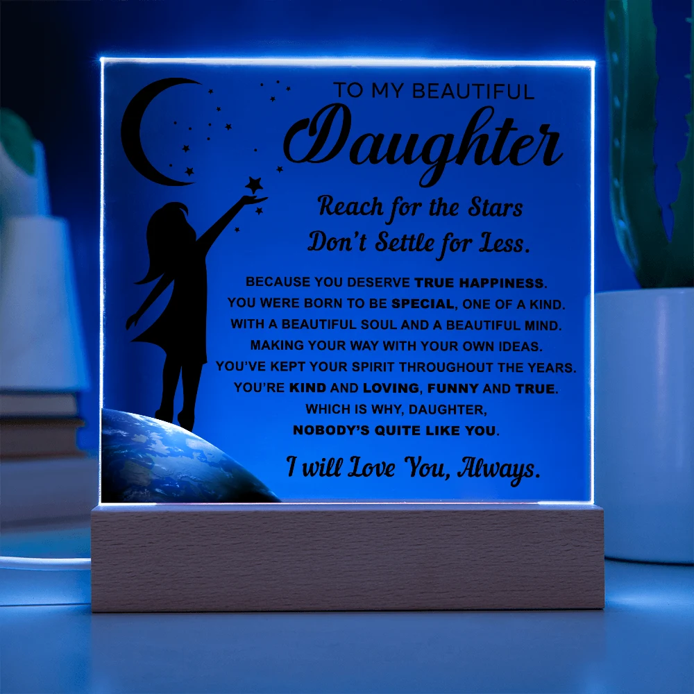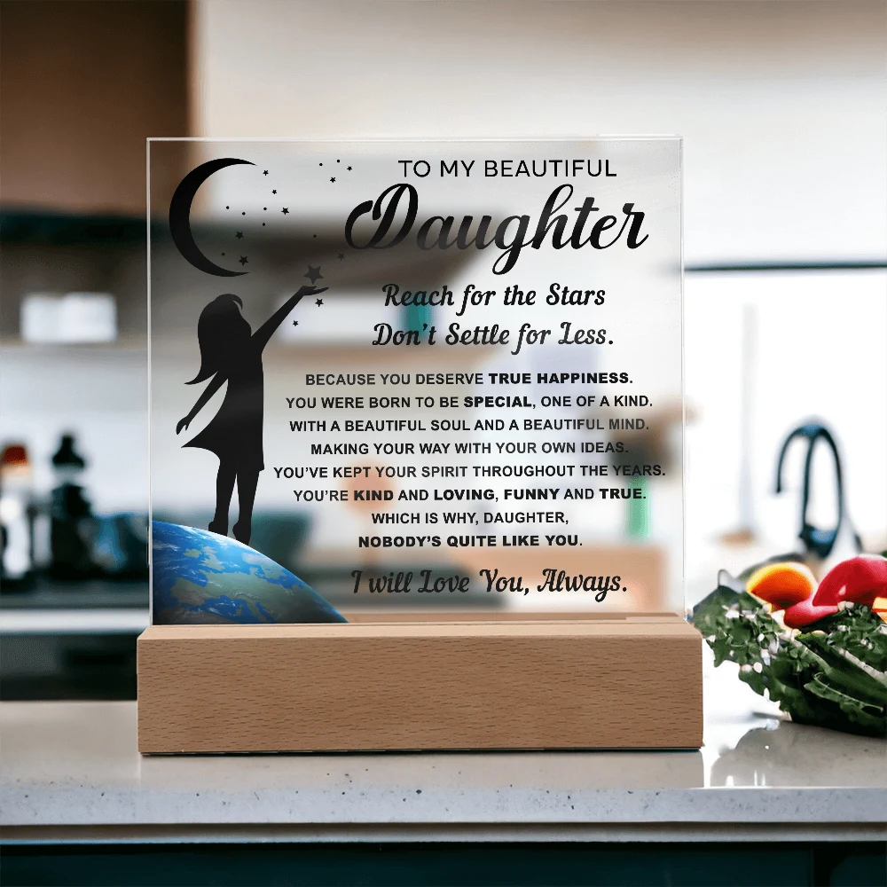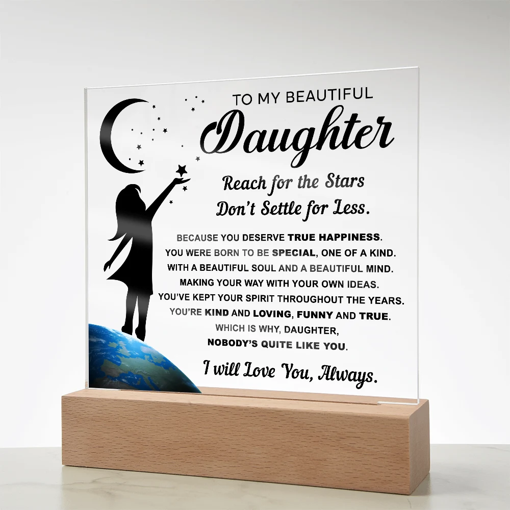 🌙 A heartfelt acrylic keepsake reminding her to reach for the stars and never settle for less.