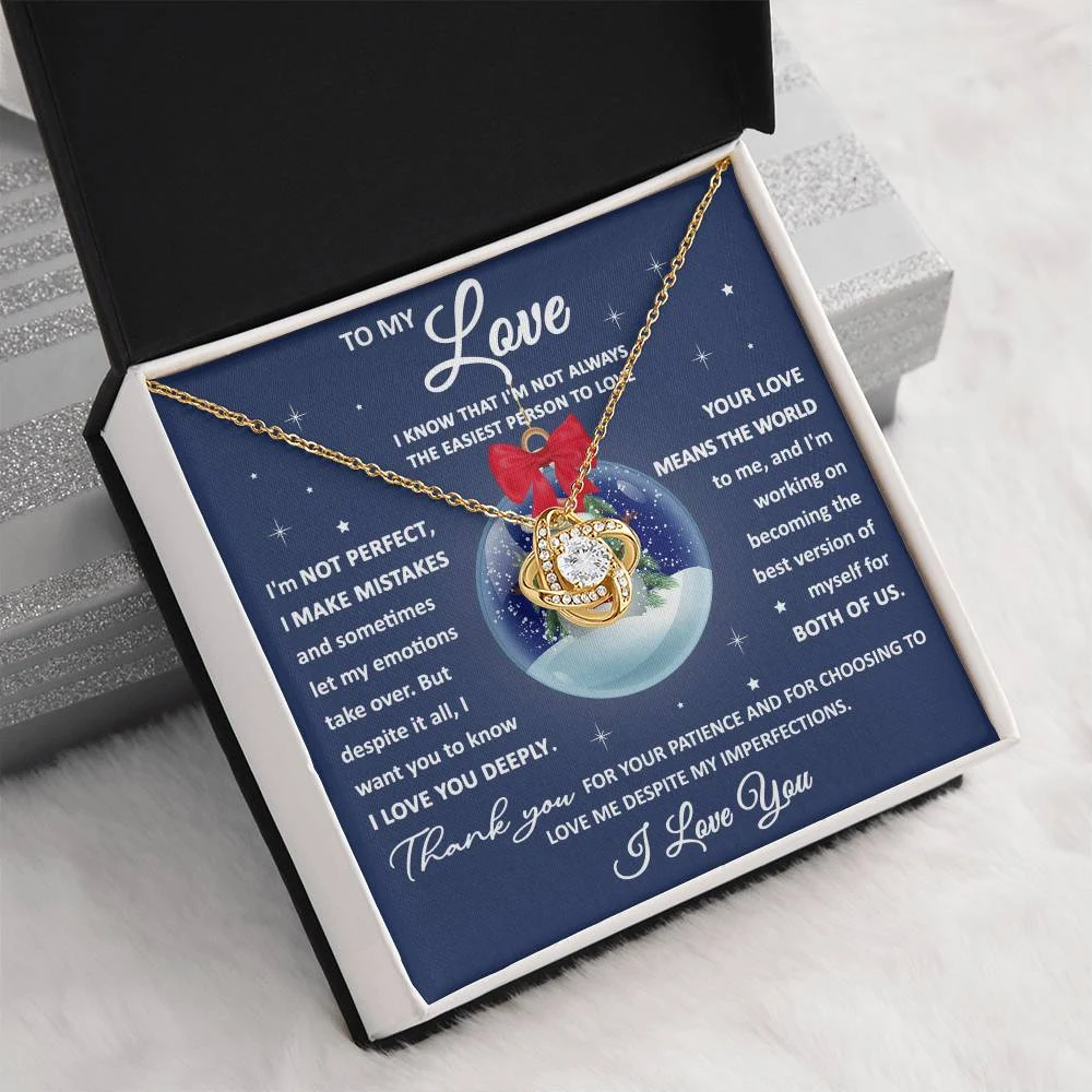 Imagine her reaction receiving this beautiful Love Knot Necklace. Representing an unbreakable bond between two souls, this piece features a beautiful pendant embellished with premium cubic zirconia crystals. Surprise your loved one with this gorgeous gift today!