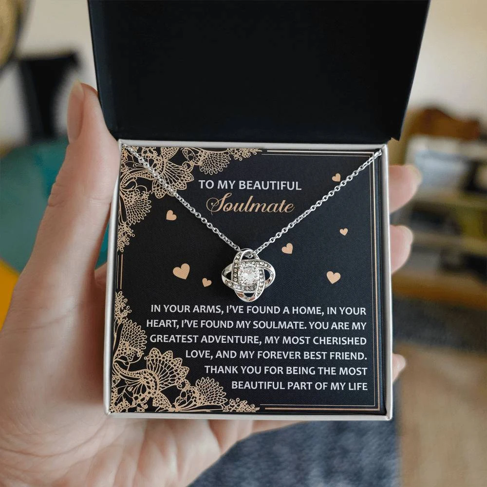 Imagine her reaction receiving this beautiful Love Knot Necklace. Representing an unbreakable bond between two souls, this piece features a beautiful pendant embellished with premium cubic zirconia crystals. Surprise your loved one with this gorgeous gift today!
