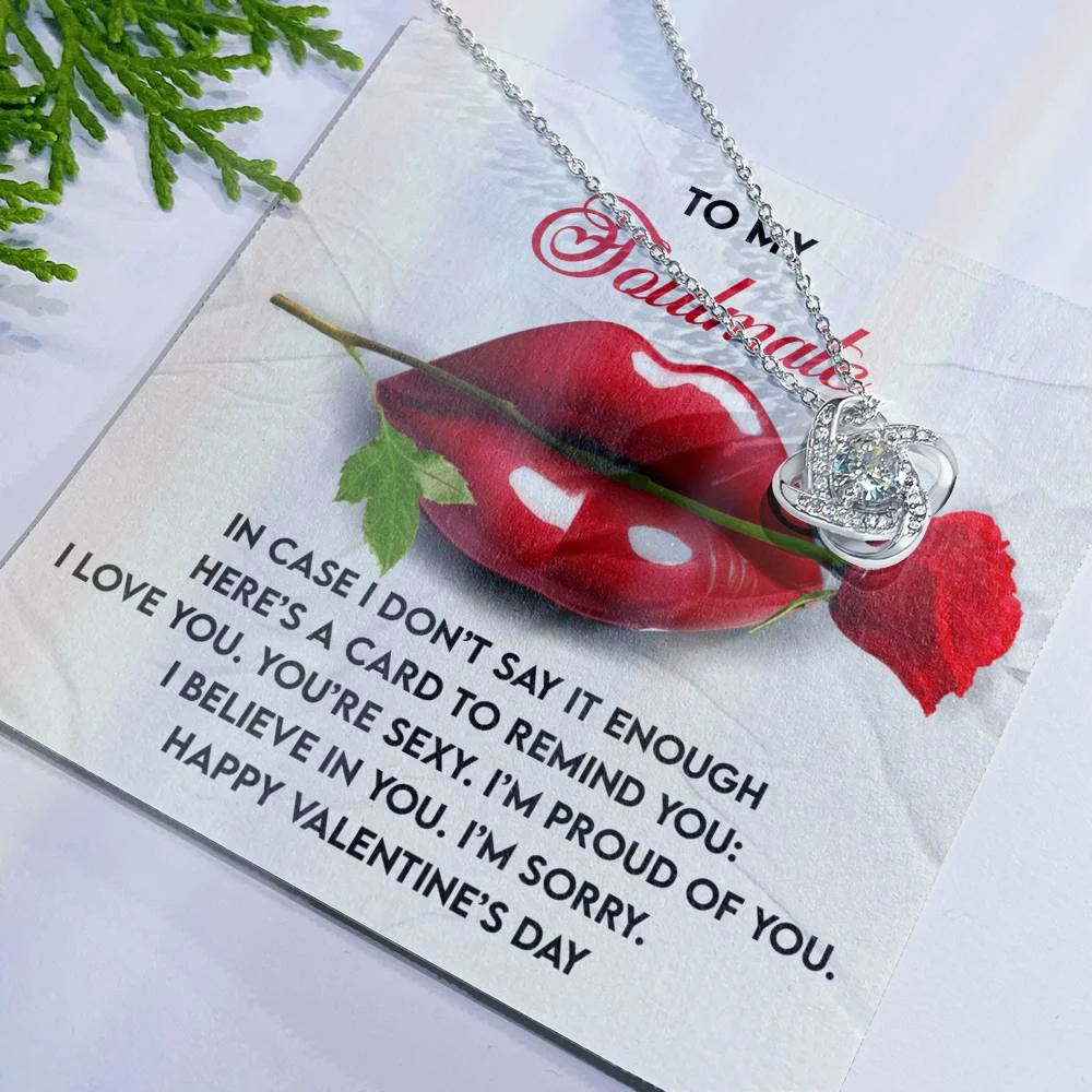 Imagine her reaction receiving this beautiful Love Knot Necklace. Representing an unbreakable bond between two souls, this piece features a beautiful pendant embellished with premium cubic zirconia crystals. Surprise your loved one with this gorgeous gift today!