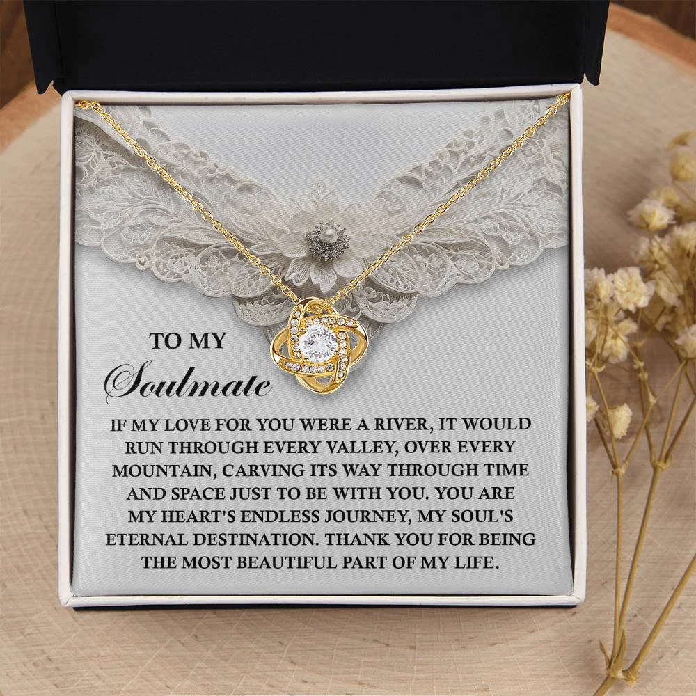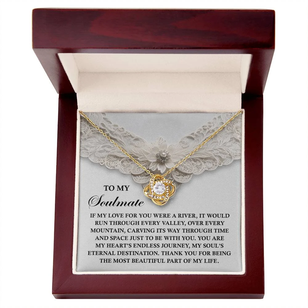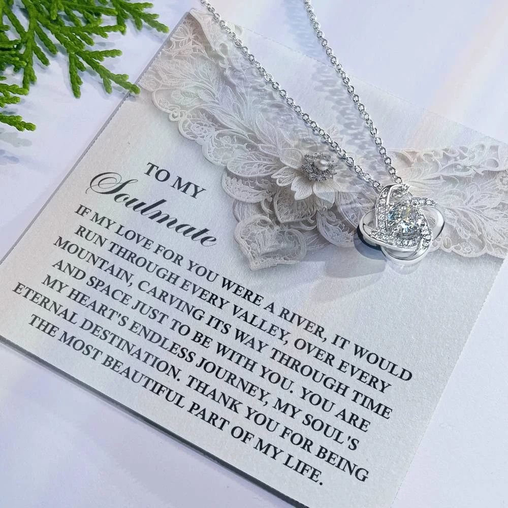 Imagine her reaction receiving this beautiful Love Knot Necklace. Representing an unbreakable bond between two souls, this piece features a beautiful pendant embellished with premium cubic zirconia crystals. Surprise your loved one with this gorgeous gift today!