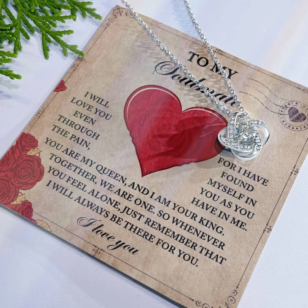 Imagine her reaction receiving this beautiful Love Knot Necklace. Representing an unbreakable bond between two souls, this piece features a beautiful pendant embellished with premium cubic zirconia crystals. Surprise your loved one with this gorgeous gift today!