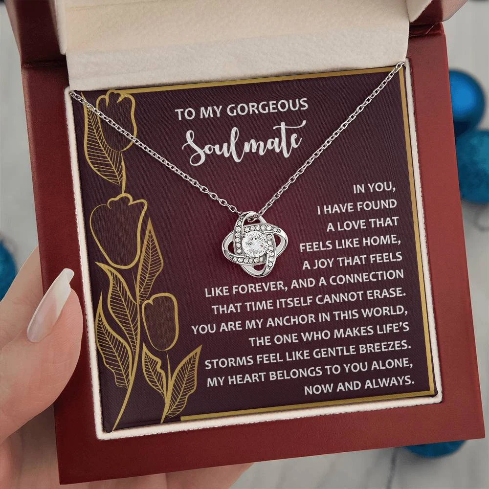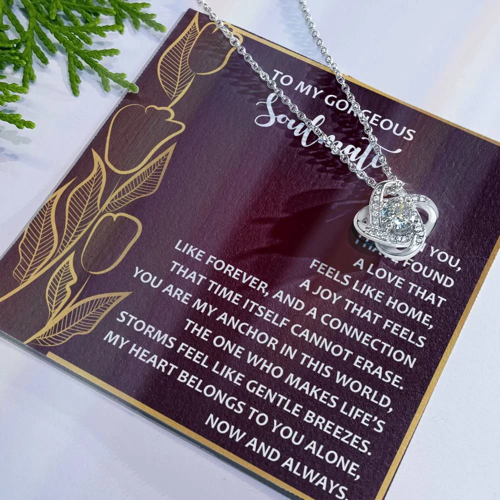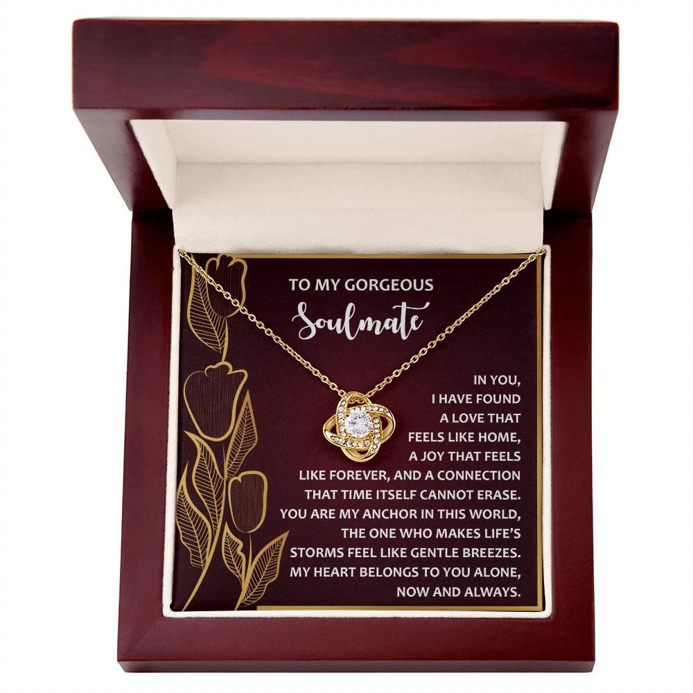 Imagine her reaction receiving this beautiful Love Knot Necklace. Representing an unbreakable bond between two souls, this piece features a beautiful pendant embellished with premium cubic zirconia crystals. Surprise your loved one with this gorgeous gift today!