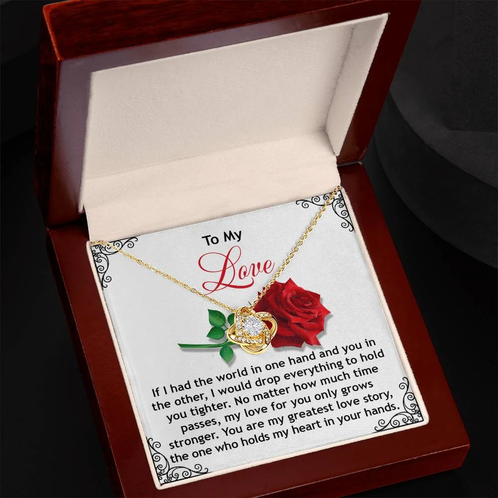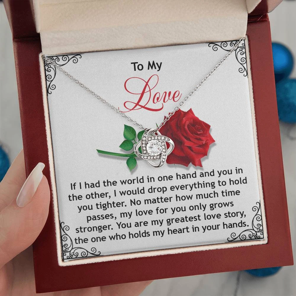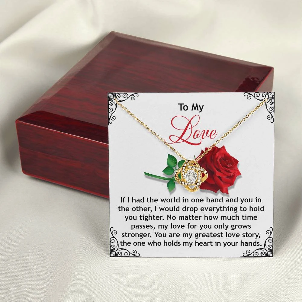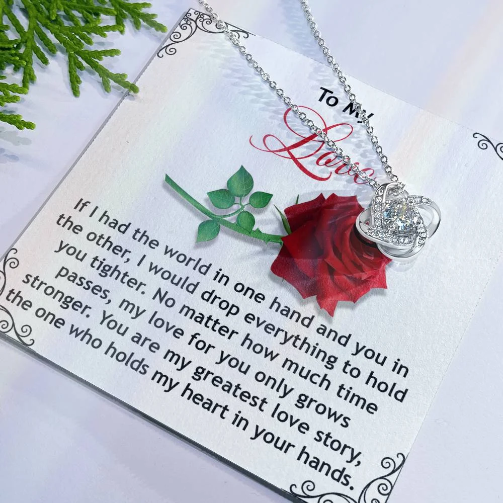 Imagine her reaction receiving this beautiful Love Knot Necklace. Representing an unbreakable bond between two souls, this piece features a beautiful pendant embellished with premium cubic zirconia crystals. Surprise your loved one with this gorgeous gift today!