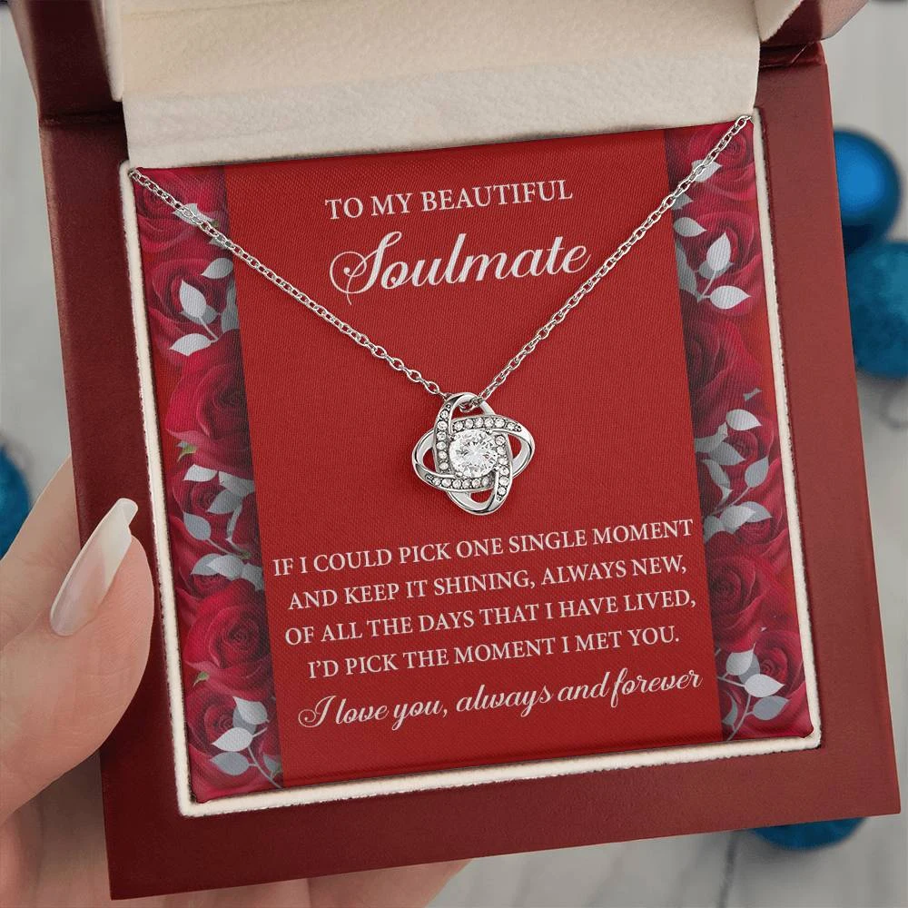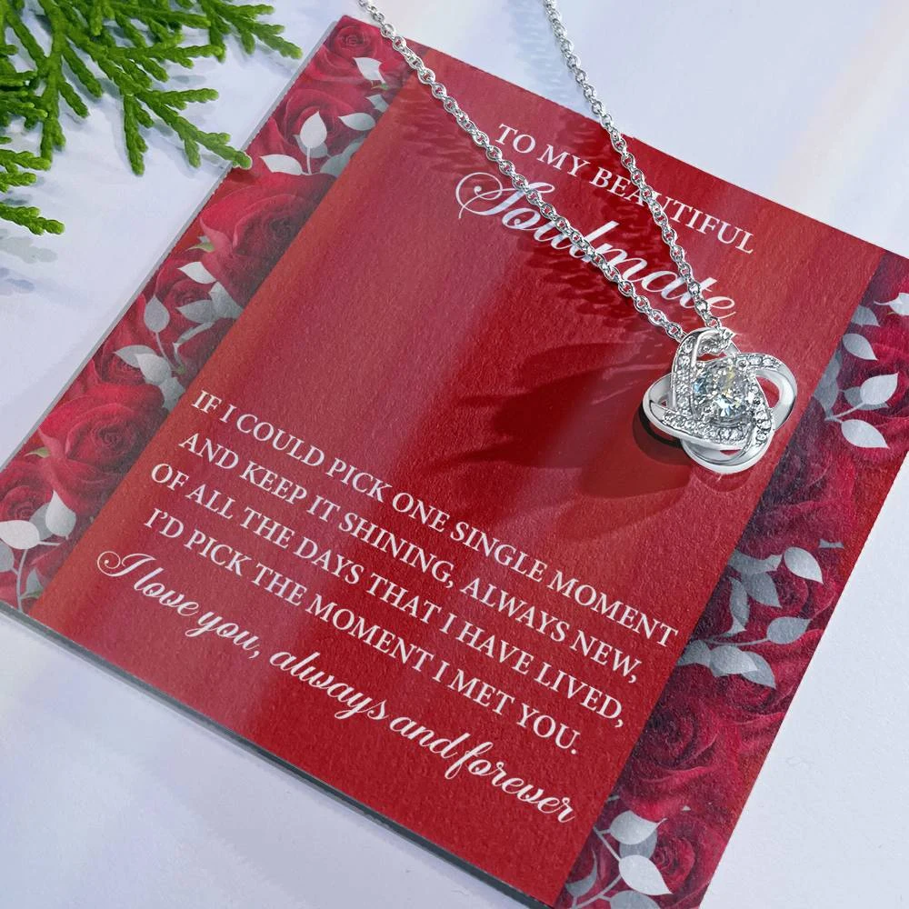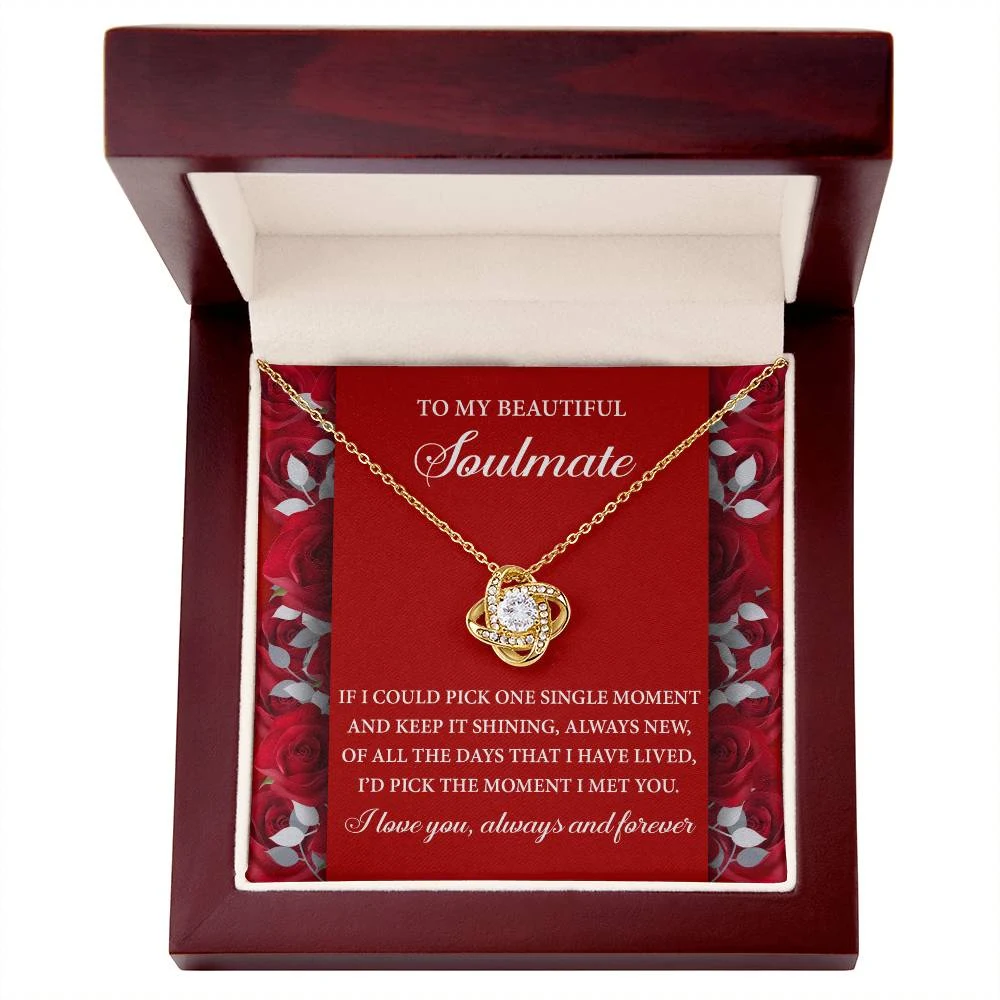 Imagine her reaction receiving this beautiful Love Knot Necklace. Representing an unbreakable bond between two souls, this piece features a beautiful pendant embellished with premium cubic zirconia crystals. Surprise your loved one with this gorgeous gift today!
