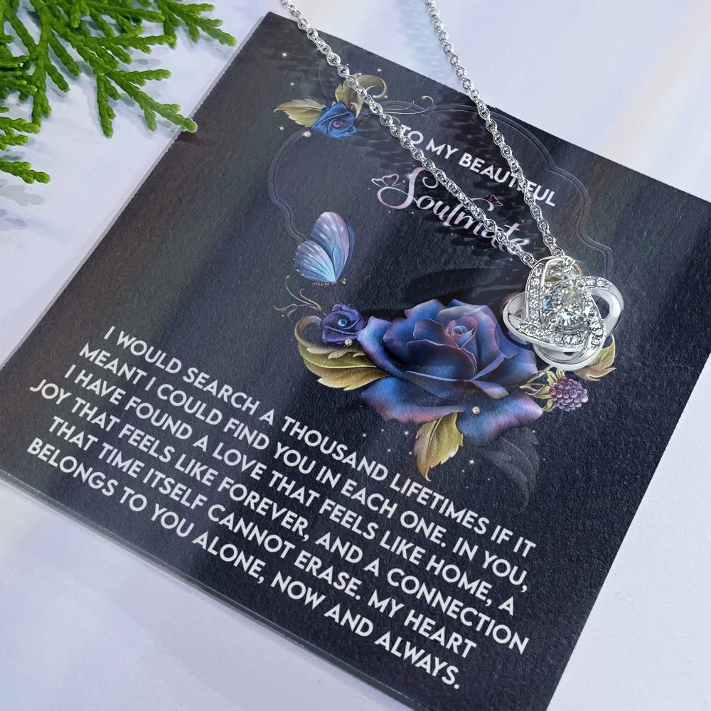 Imagine her reaction receiving this beautiful Love Knot Necklace. Representing an unbreakable bond between two souls, this piece features a beautiful pendant embellished with premium cubic zirconia crystals. Surprise your loved one with this gorgeous gift today!