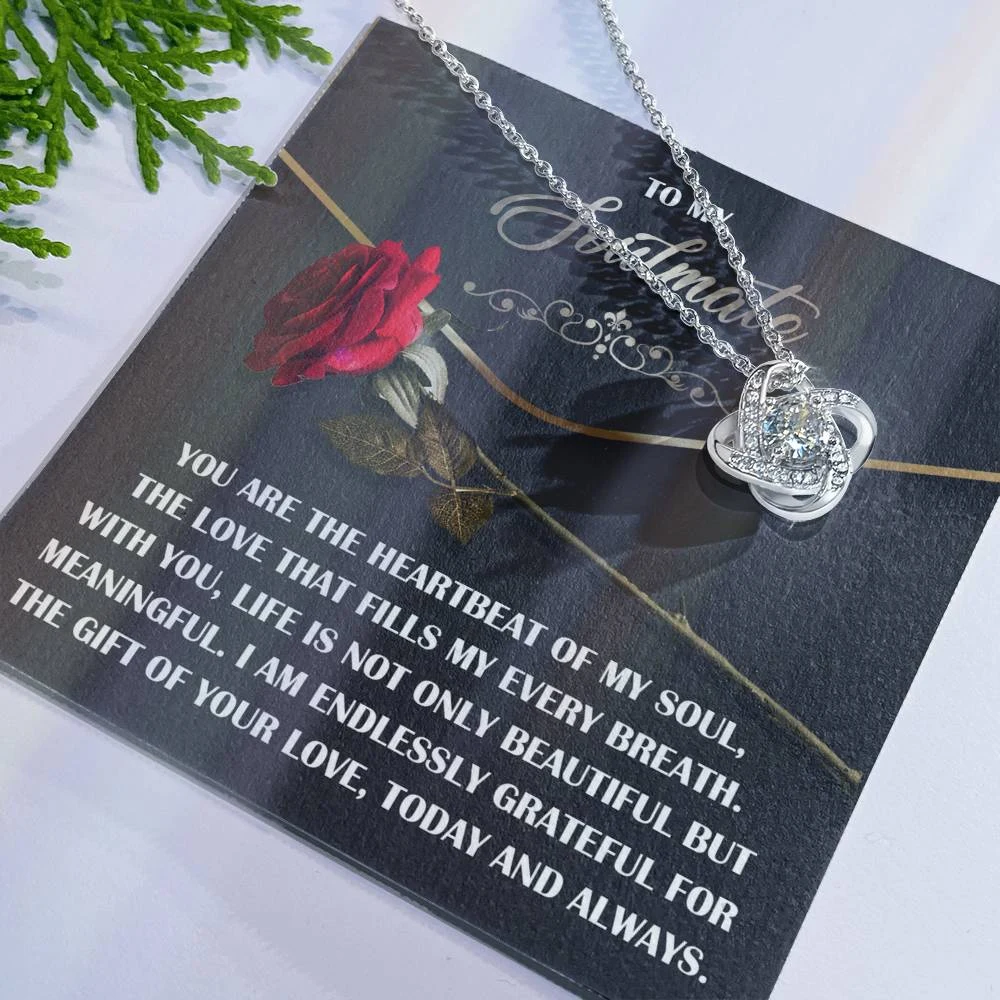 Imagine her reaction receiving this beautiful Love Knot Necklace. Representing an unbreakable bond between two souls, this piece features a beautiful pendant embellished with premium cubic zirconia crystals. Surprise your loved one with this gorgeous gift today!