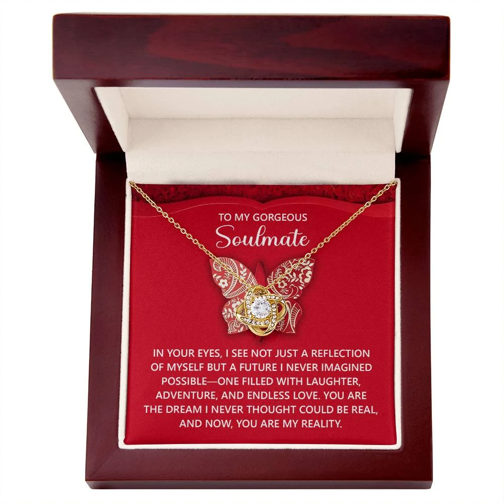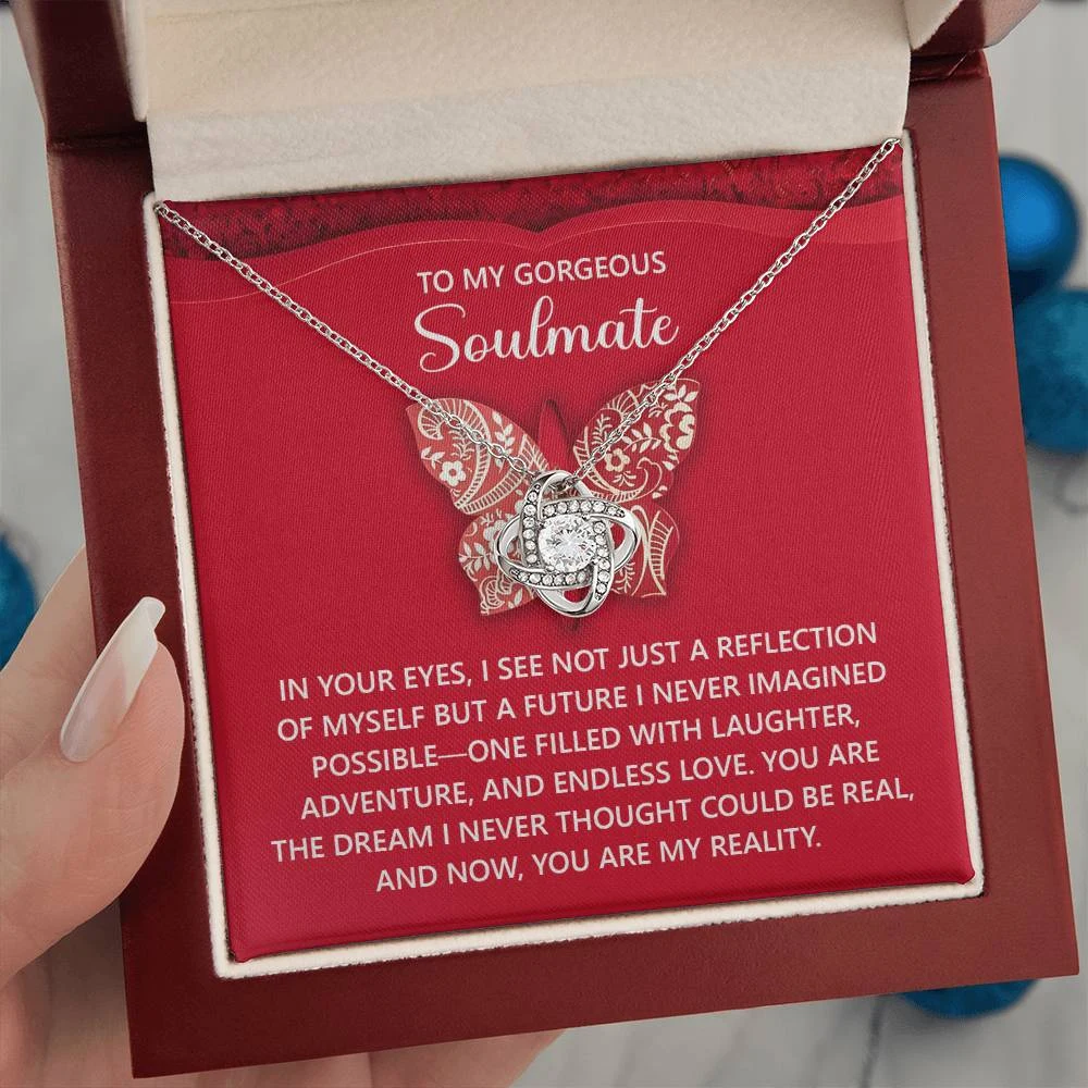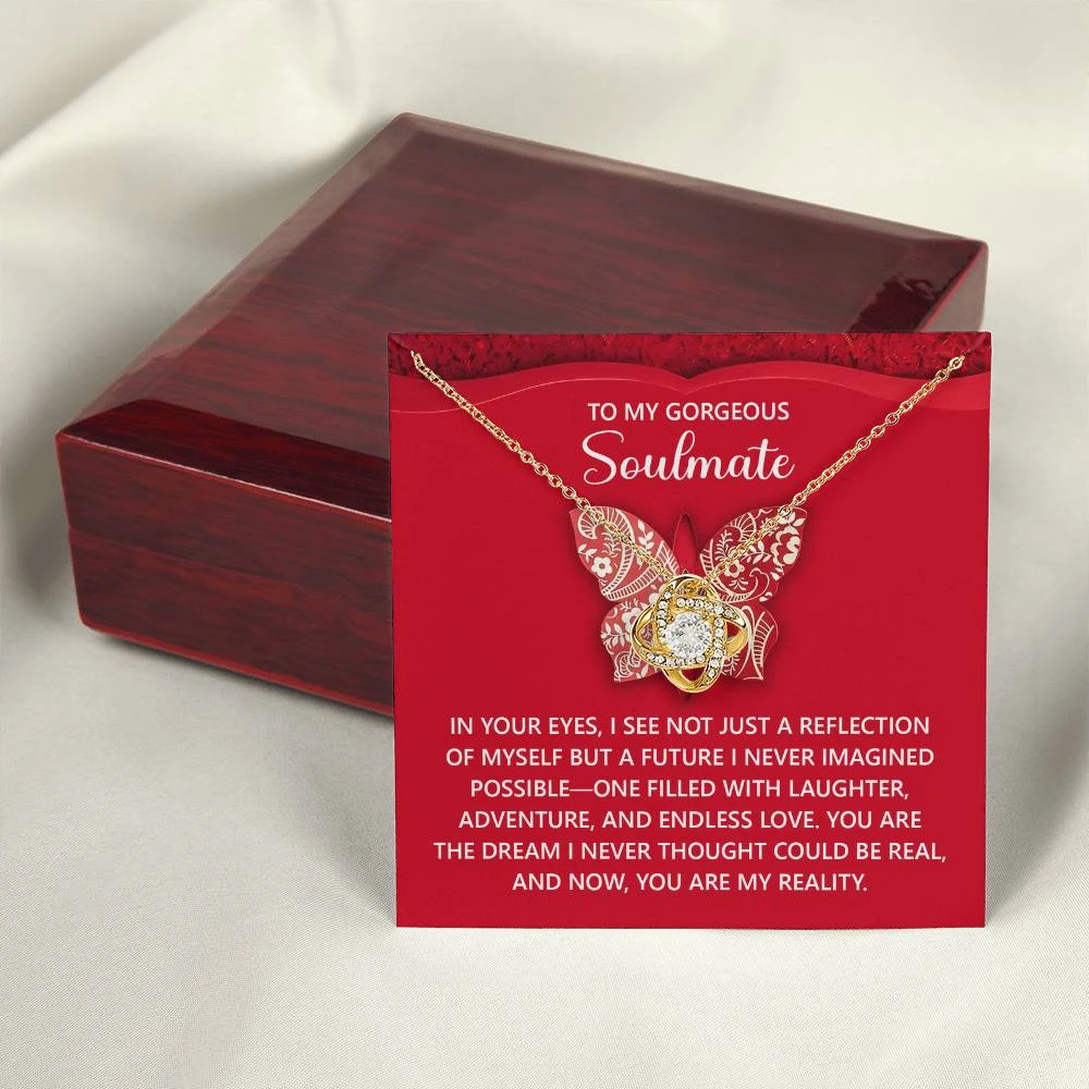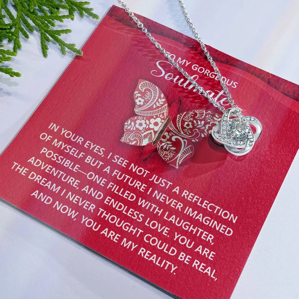 Imagine her reaction receiving this beautiful Love Knot Necklace. Representing an unbreakable bond between two souls, this piece features a beautiful pendant embellished with premium cubic zirconia crystals. Surprise your loved one with this gorgeous gift today!