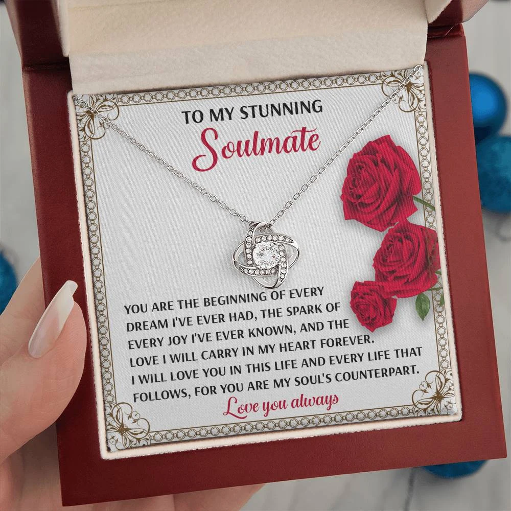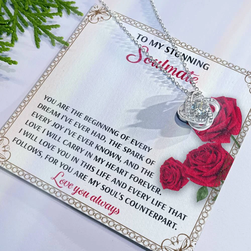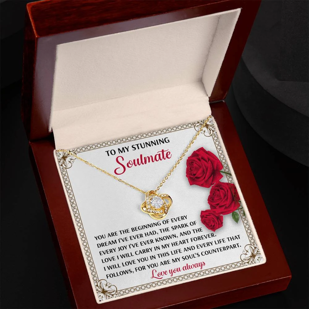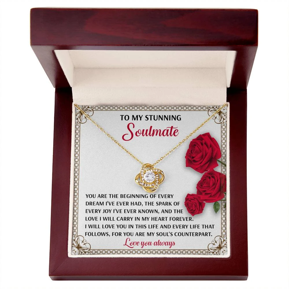 Imagine her reaction receiving this beautiful Love Knot Necklace. Representing an unbreakable bond between two souls, this piece features a beautiful pendant embellished with premium cubic zirconia crystals. Surprise your loved one with this gorgeous gift today!