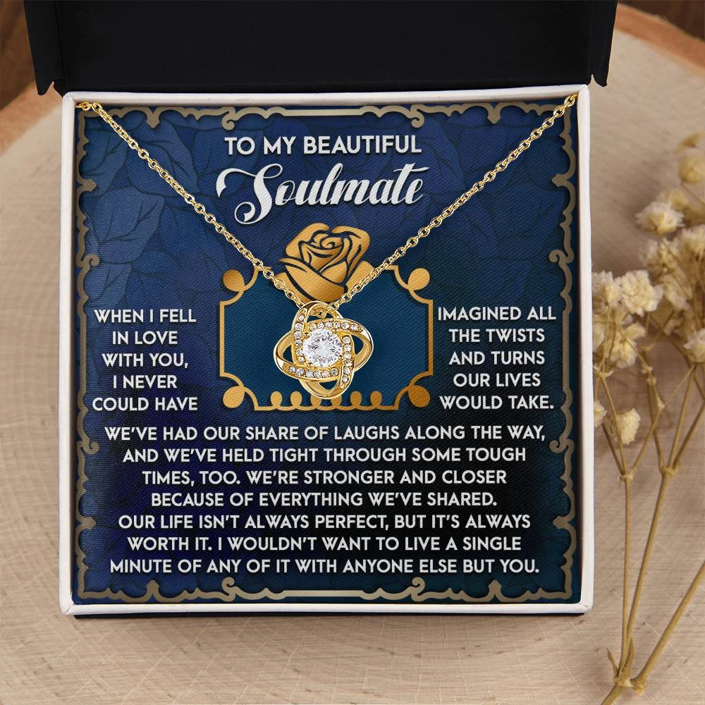 Imagine her reaction receiving this beautiful Love Knot Necklace. Representing an unbreakable bond between two souls, this piece features a beautiful pendant embellished with premium cubic zirconia crystals. Surprise your loved one with this gorgeous gift today!