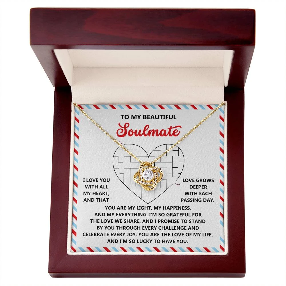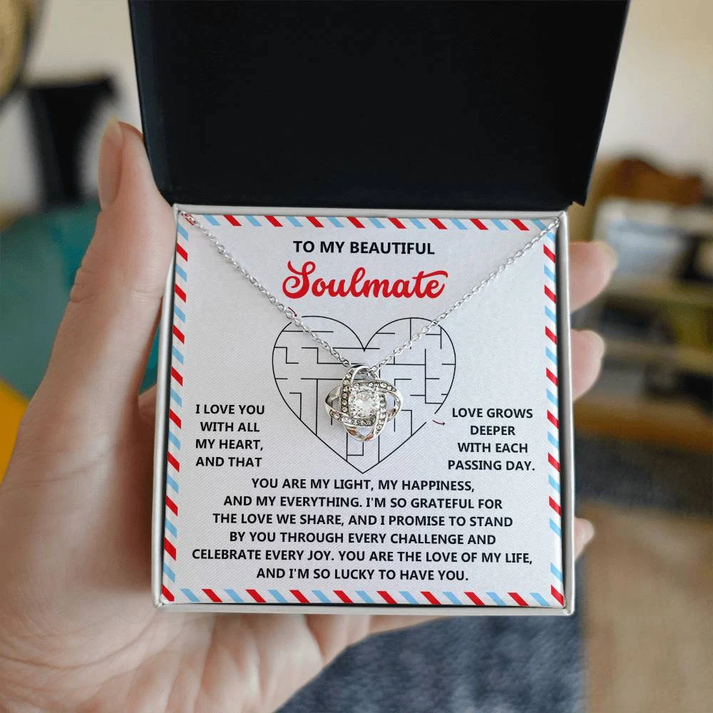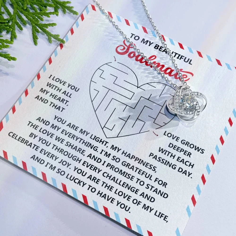 Imagine her reaction receiving this beautiful Love Knot Necklace. Representing an unbreakable bond between two souls, this piece features a beautiful pendant embellished with premium cubic zirconia crystals. Surprise your loved one with this gorgeous gift today!