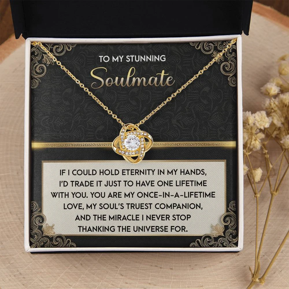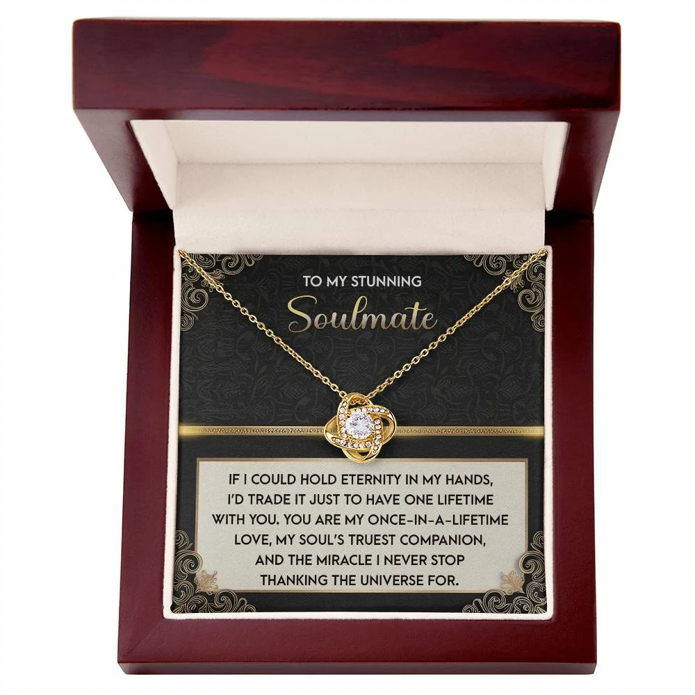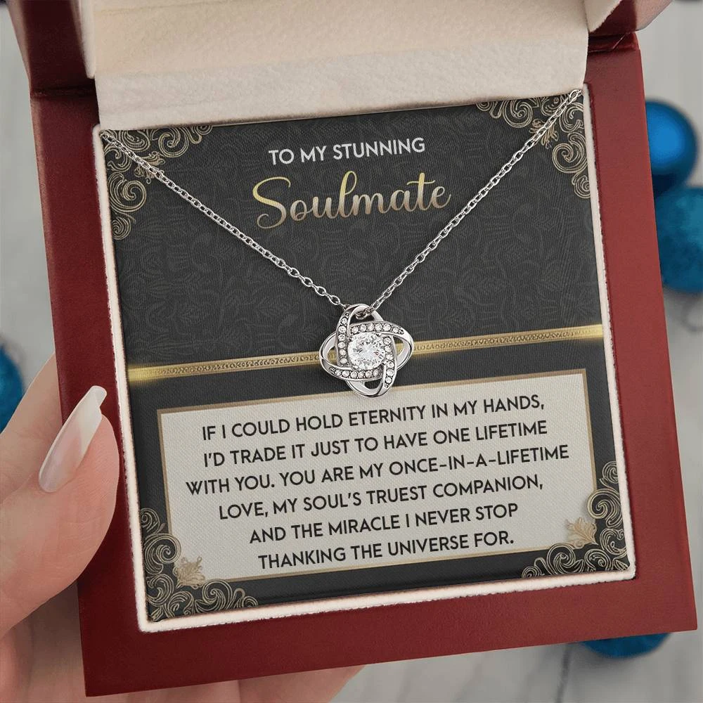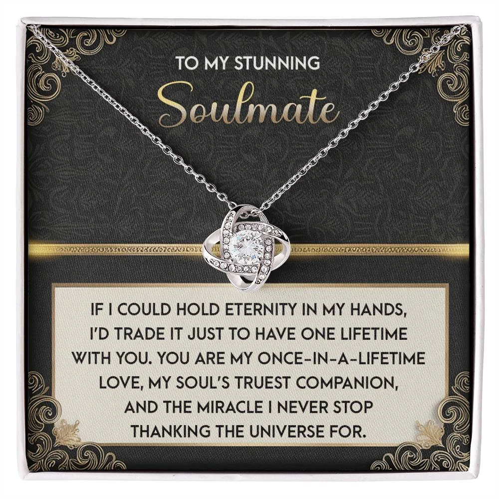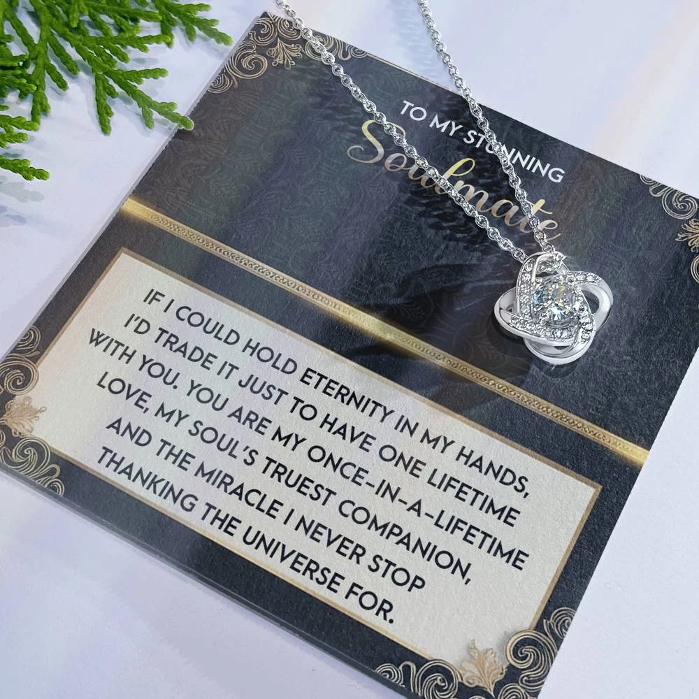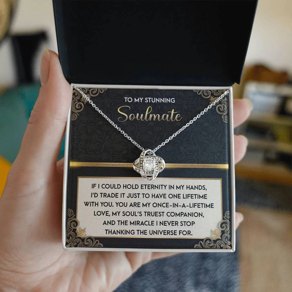 Imagine her reaction receiving this beautiful Love Knot Necklace. Representing an unbreakable bond between two souls, this piece features a beautiful pendant embellished with premium cubic zirconia crystals. Surprise your loved one with this gorgeous gift today!
