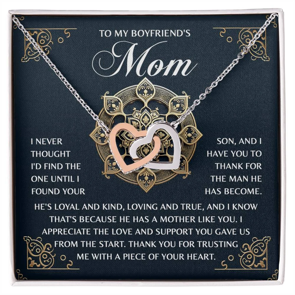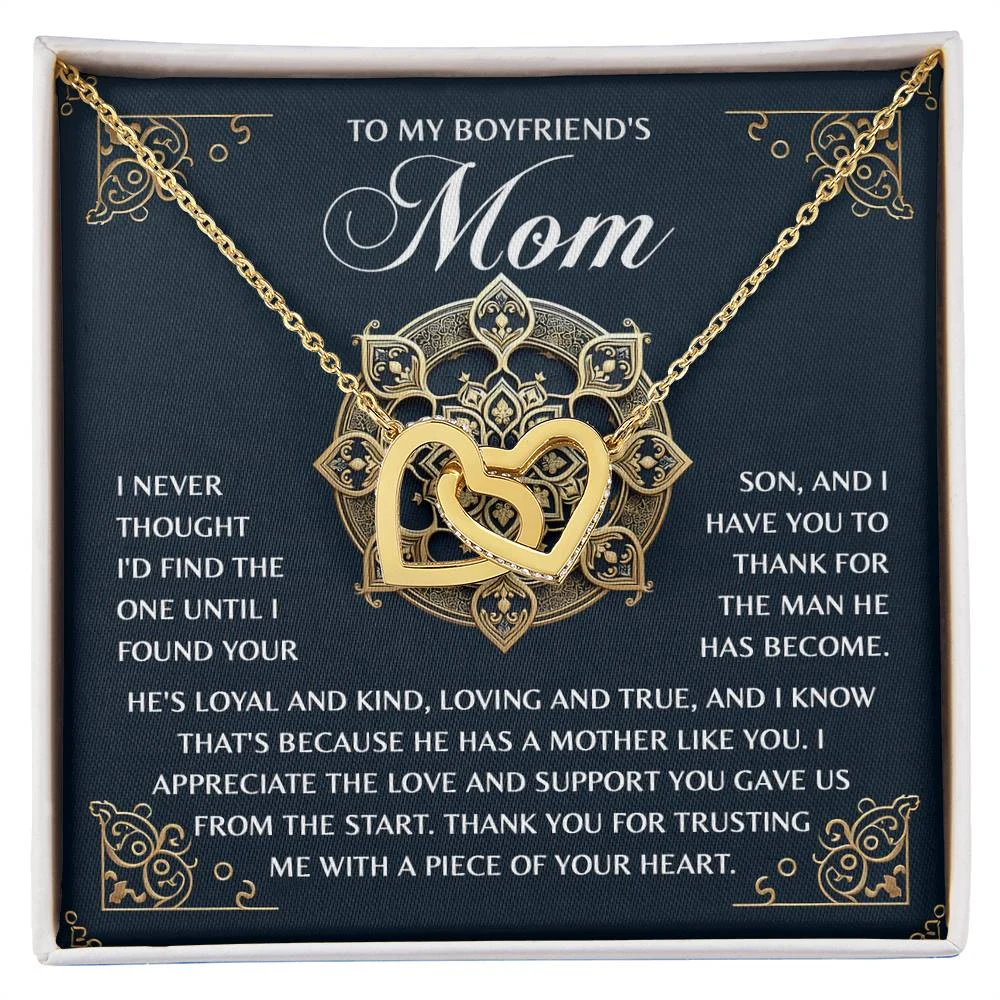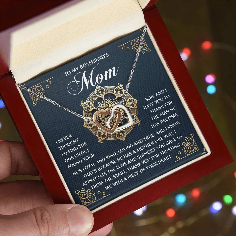 “TO MY BOYFRIEND’S MOM – I never thought I’d find the one until I found your son, and I have you to thank for the man he has become. He’s loyal and kind, loving and true, and I know that’s because he has a mother like you. I appreciate the love and support you gave us from the start. Thank you for trusting me with a piece of your heart.”