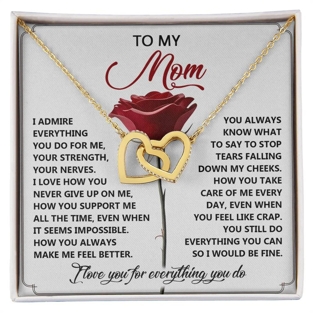 “TO MY MOM – I admire everything you do for me, your strength, your nerves. I love how you never give up on me, how you support me all the time, even when it seems impossible. How you always make me feel better. You always know what to say to stop tears falling down my cheeks. How you take care of me every day, even when you feel like crap. You still do everything you can so I would be fine. Love you for everything you do.”